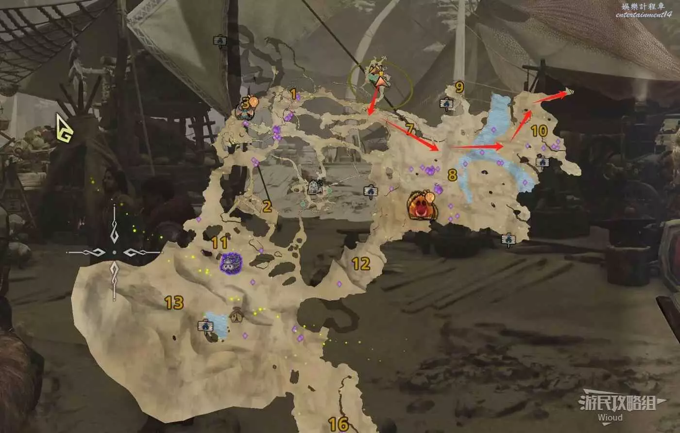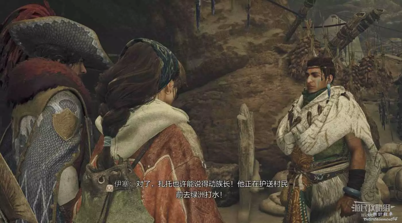 劇情中成功在森林建立營地後,與營地內的納塔和門口的艾瑞克對話觸發下一個節點,跟隨艾瑞克等人前往備選地,中間就一直跟著指引走就行。