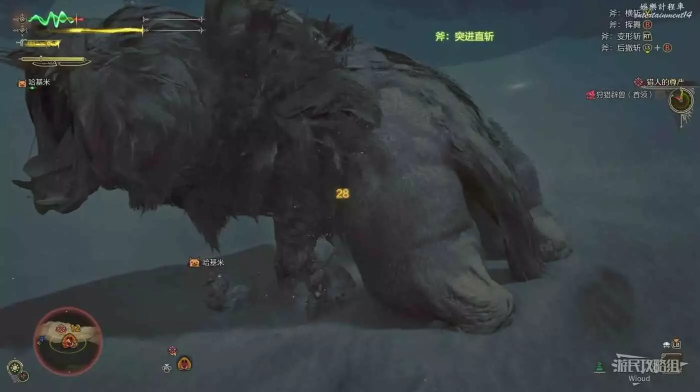 通過坐騎的自動尋路功能直接前往桃毛獸王的位置開啟戰鬥,桃毛獸王的弱點是臀部,而頭部【桃毛獸王的牙】、尾巴【桃毛獸王的毛】和前腿【桃毛獸王的爪】這三個部位都可以被破壞並掉落特定素材。