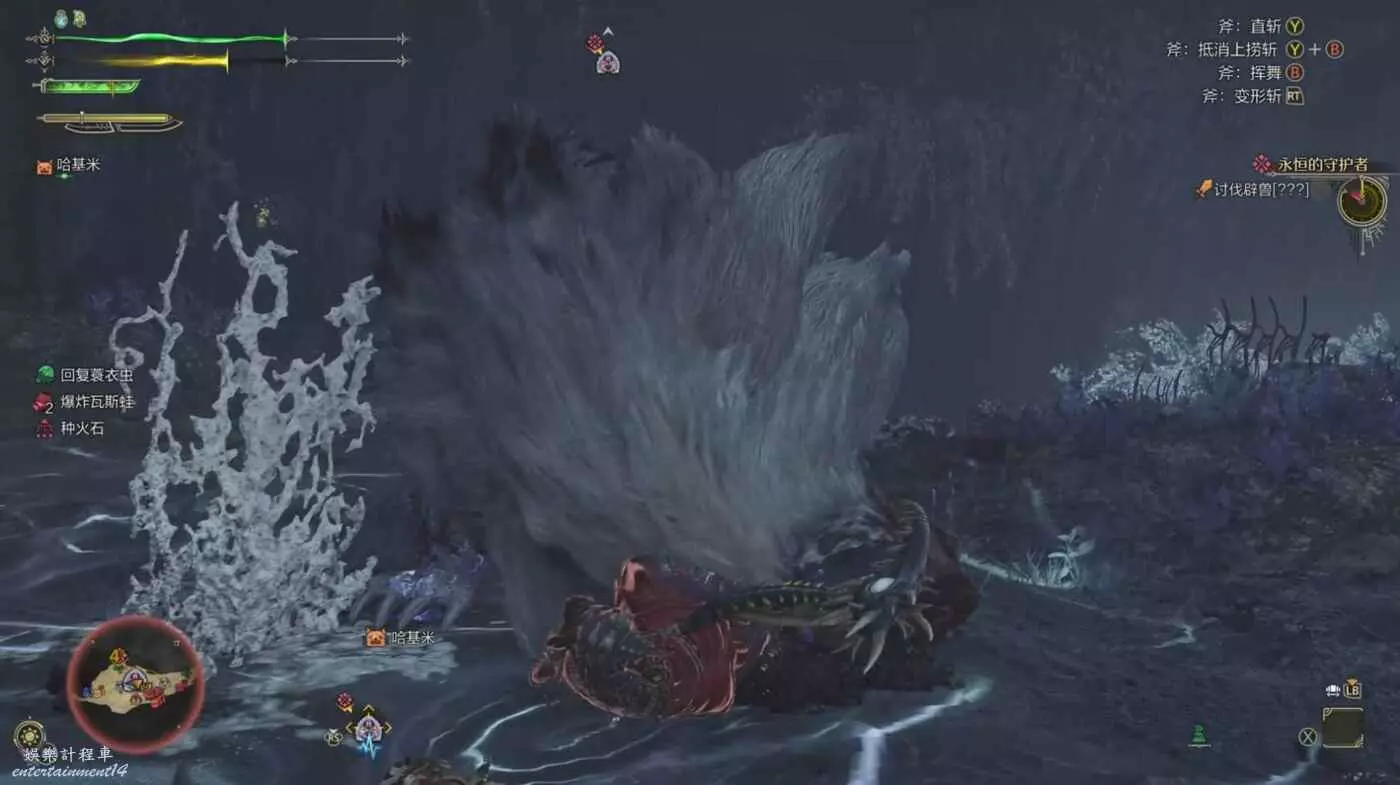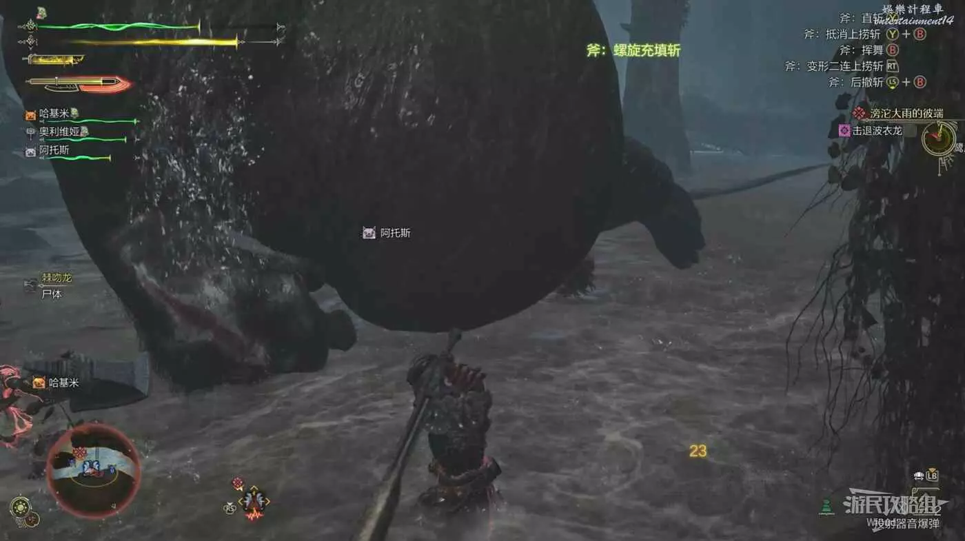 這招的前搖也很明顯,且不會無傷到怪物嘴部兩側的玩家,看到這招前搖往兩側稍微移動一會繼續攻擊即可。
