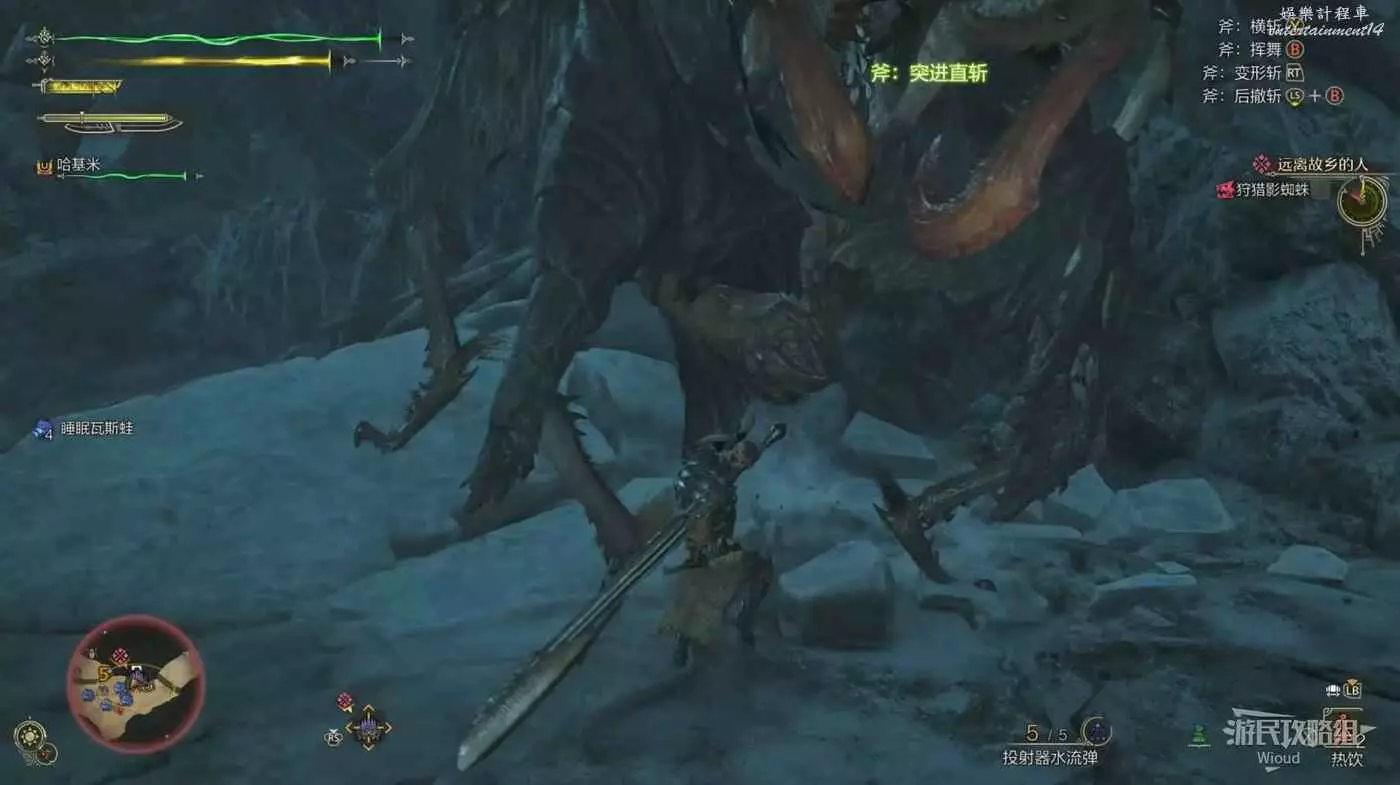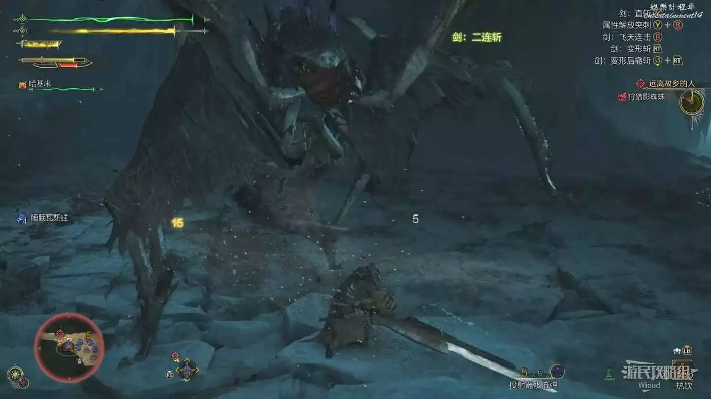 使用此招前,蜘蛛會抬起一根腿並暫時不動,蓄力狀態結束後使用抬起的腿砸向地面,看到前搖直接往另一側移動躲避。