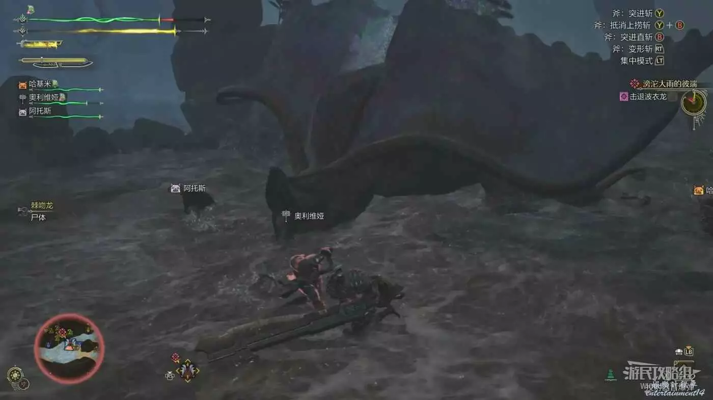 傳送到龍都遺跡與塔辛對話,騎龍自動尋路過劇情直到觸發與護凶爪龍的戰鬥。