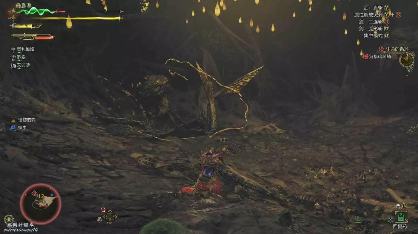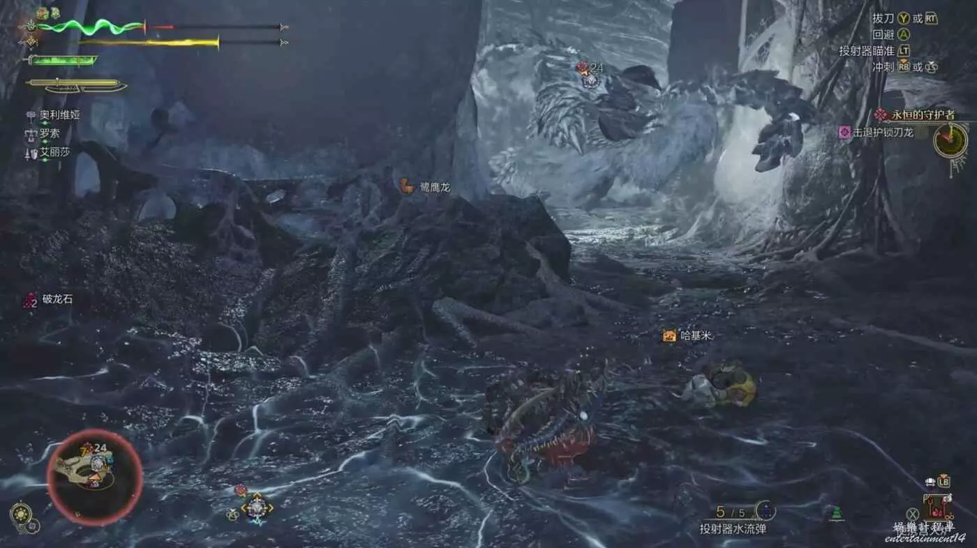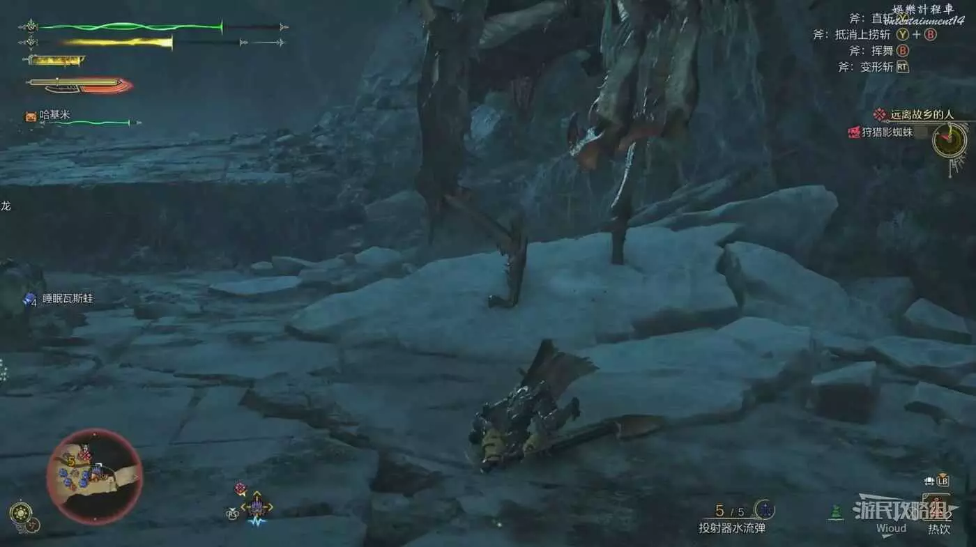 擊敗護凶爪龍後,另一隻潛藏暗處的怪物暗器蛸突然出現將我們與龍的屍體拽回了它的洞窟並開啟了二連戰。