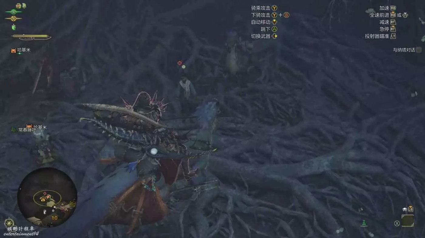 來到鷺鷹龍旁使用對應按鍵騎乘上去,龍會自己尋路到達怪物旁邊,中間我們只需要操控加速與減速按鍵。