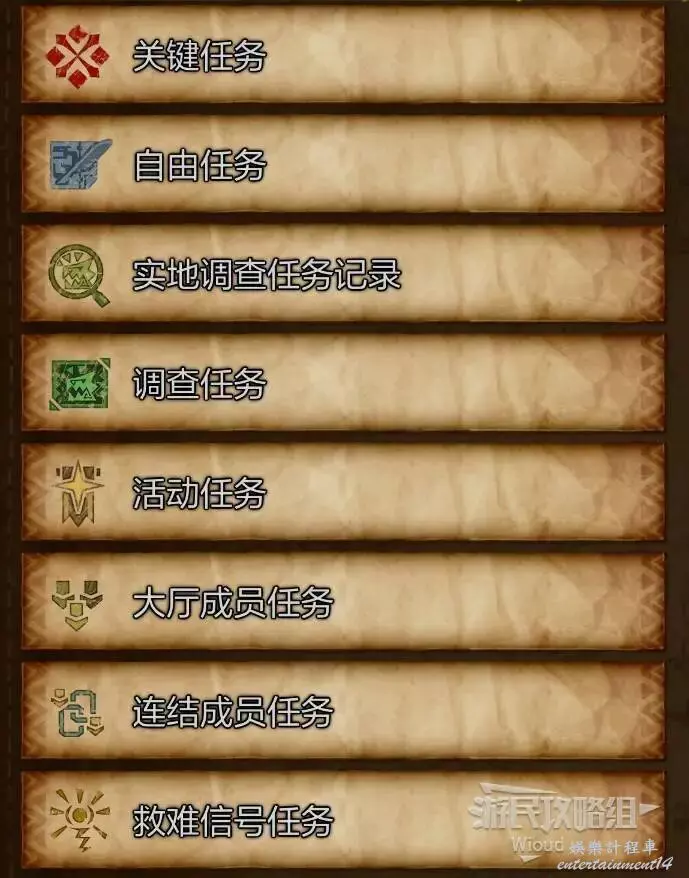《魔物獵人:荒野》的任務類型多樣,不用的任務有著不同作用與解鎖方法,所有任務都可以在NPC阿爾瑪處看到,下面我將以此為大家介紹這些任務的區別: