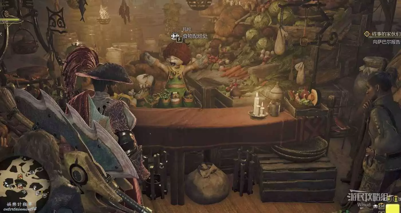 只存在於第一個沙漠地圖大本營的設施,與食物配給處的NPC對話可以領取食物類的相關道具,每次領取完都有一段時間的冷卻,刷新後可以再次過來領取,而錯過的NPC會一直保留。