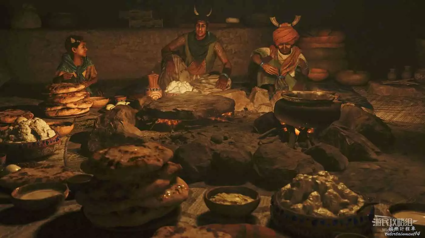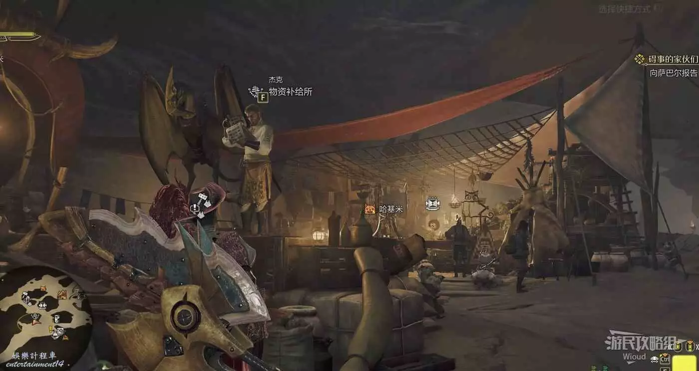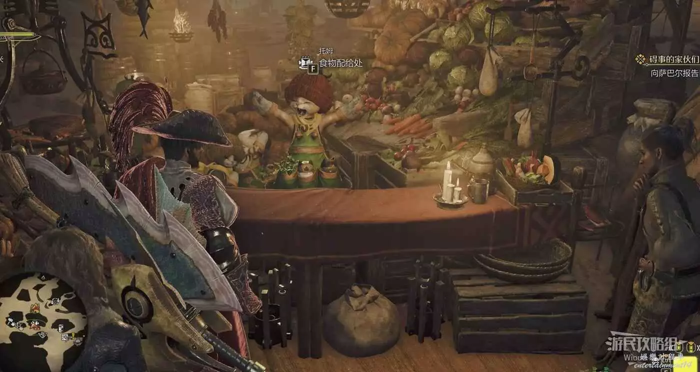 傳送到某個聚落打開地圖,當地圖出現下圖所示的標識時,說明這個NPC想請你吃飯,與NPC吃飯可以獲得最大的增益,而自己做飯只能獲得較小增益,因此多吃家人飯才是真理。