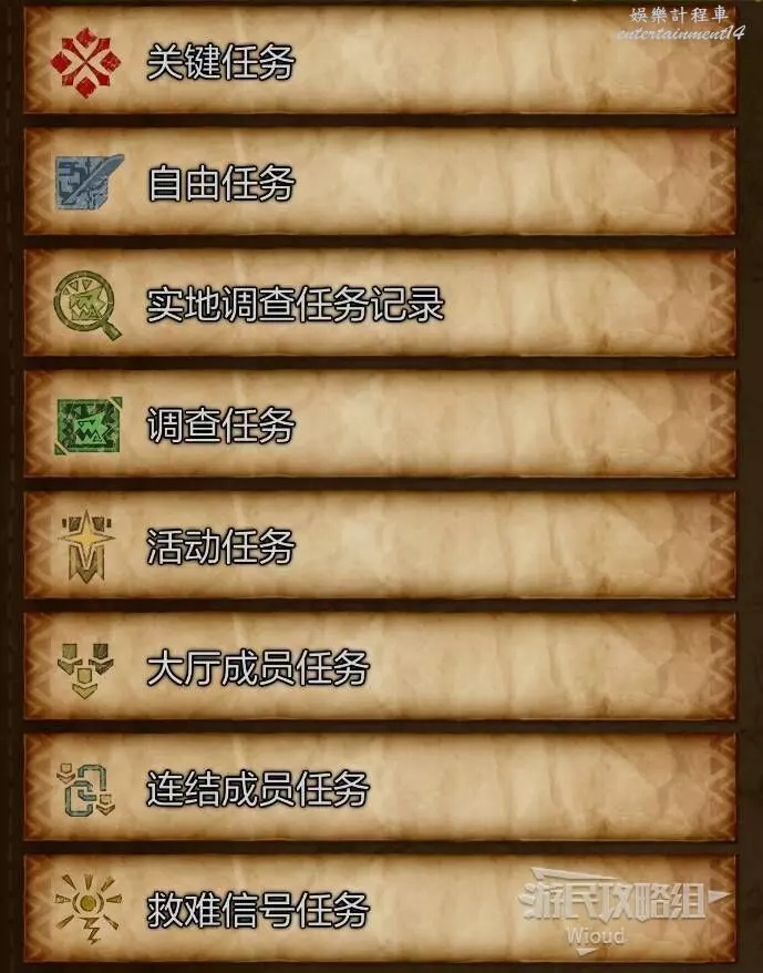 《魔物獵人:荒野》的任務類型多樣,不用的任務有著不同作用與解鎖方法,所有任務都可以在NPC阿爾瑪處看到,下面我將以此為大家介紹這些任務的區別: