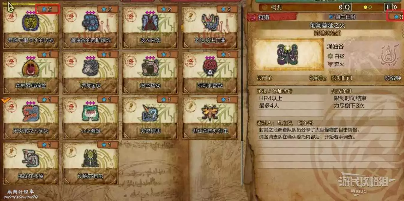 不同任務之間是有明確分級的,玩家正式進入任務前,玩家可以面板左側任務標籤的右上角與螢幕右側看到任務的星級,星級越高難度越高,給的獎勵越好。