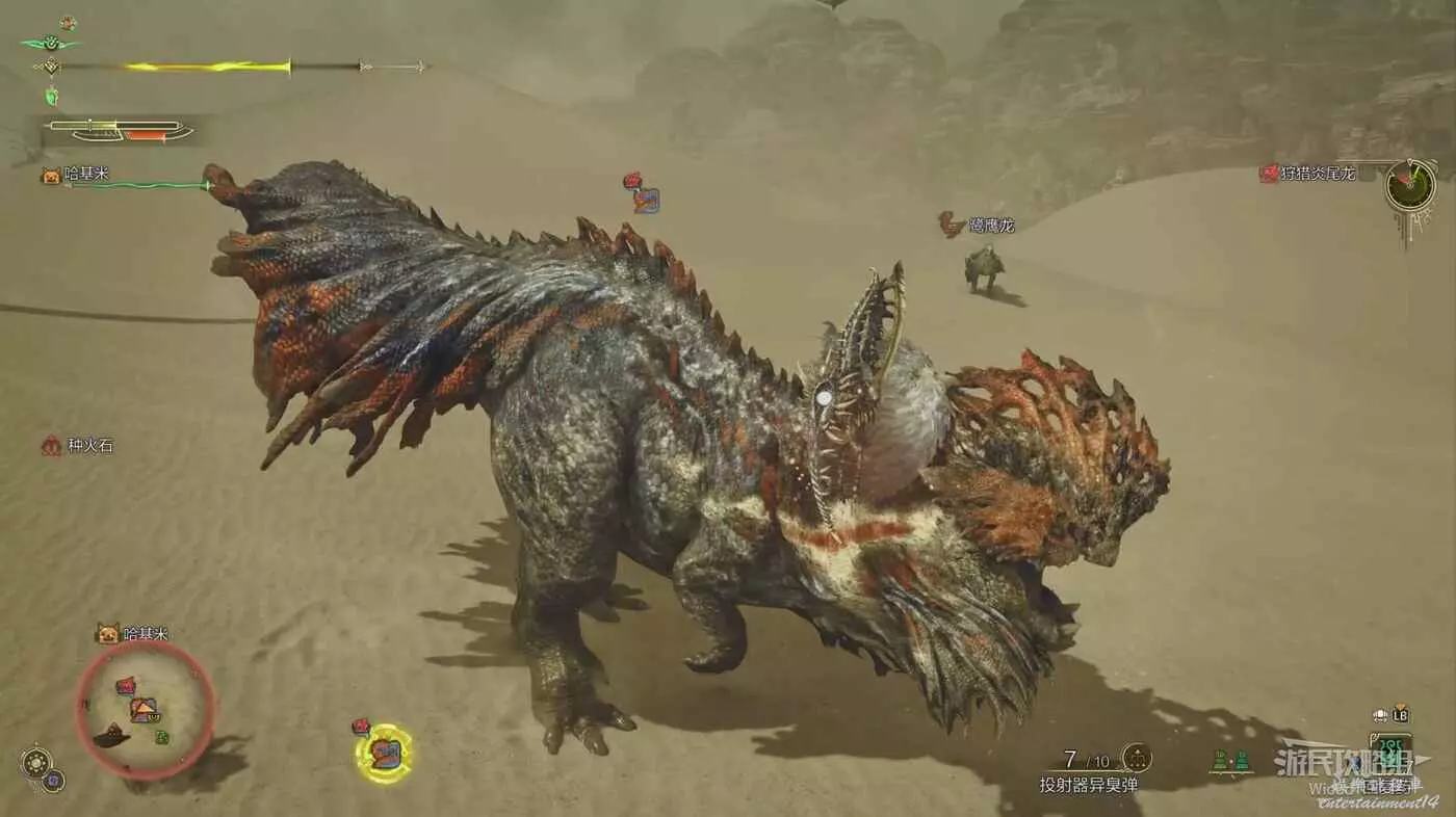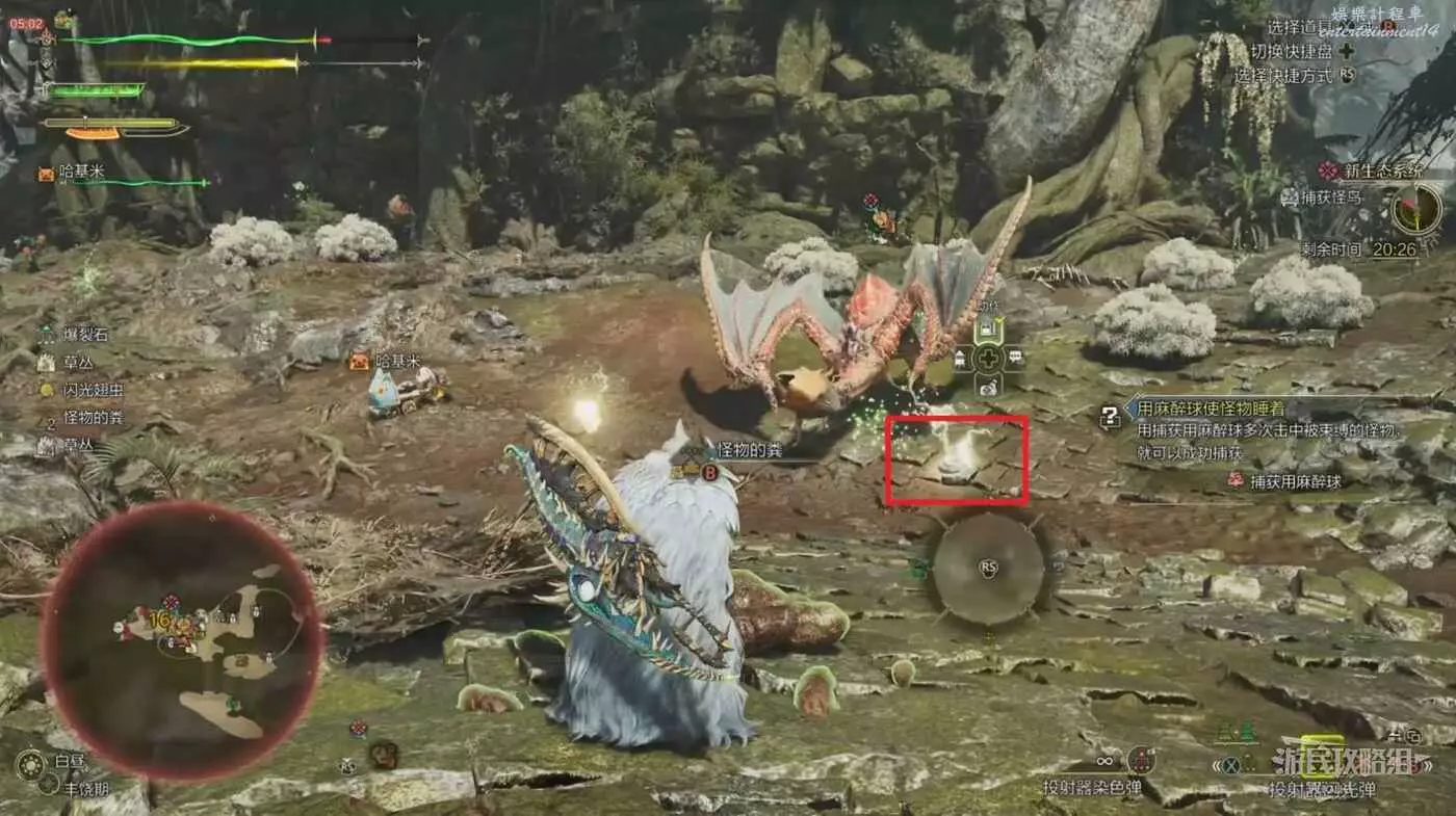 首先是大型怪物,想要捕獲大型怪物需要準備麻醉陷阱與捕獲專用麻醉彈,先將怪物打到殘血,也就是明顯看出怪物一瘸一拐的狀態時,通過麻醉陷阱與麻醉彈不斷累積麻醉量,當麻醉量到達某一個節點時即可成功捕獲怪物。