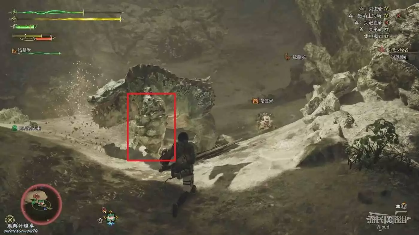 此招式有一個明顯的抬手蓄力的動作,隨後纏蛙用右爪砸向地面對被擊中的玩家造成擊飛效果,因前搖明顯有充足的躲避時間。