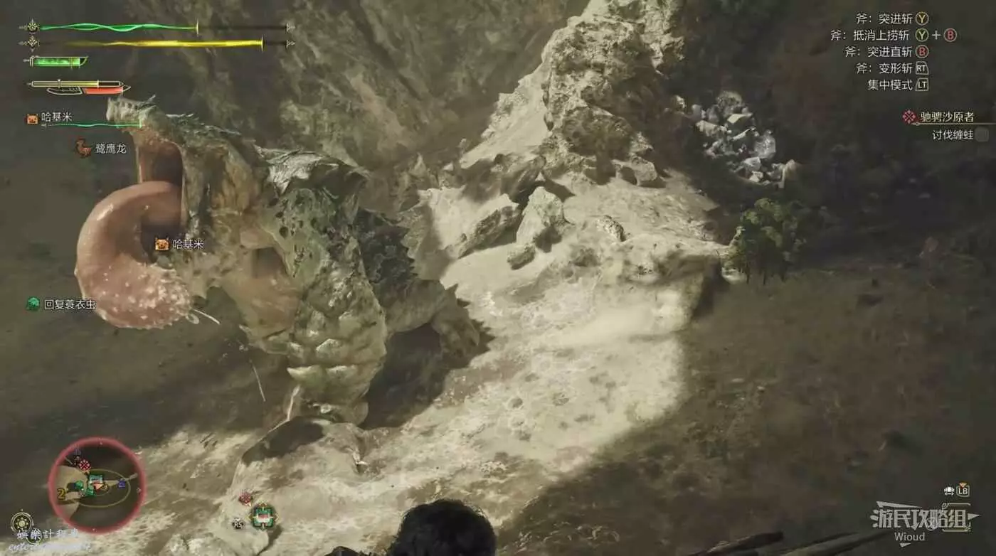 而纏蛙的兩個前肢是可被破壞的部位,破壞部位後可以獲得最稀有的素材【纏蛙的纏甲】,正常擊敗只有15%的幾率可以獲得。