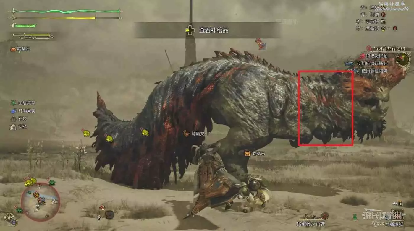 炎尾龍的弱點是其頸部,也就是脖子這一塊,正常攻擊難度稍大,建議優先攻擊可破壞的部位製造傷口,等待倒地時全力攻擊弱點。