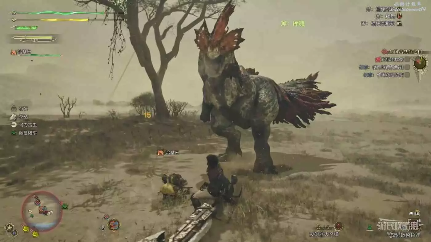 炎尾龍一邊張大嘴巴一邊抬高腦袋,看到這個前搖立刻遠離炎尾龍朝向區域,前搖結束後炎尾龍會直接朝目視方向咬一口。