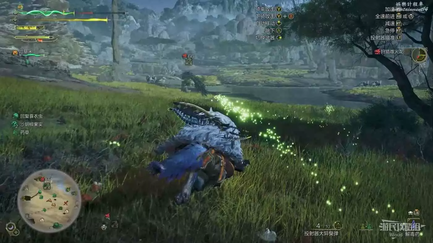 首先是大型怪物,想要捕獲大型怪物需要準備麻醉陷阱與捕獲專用麻醉彈,先將怪物打到殘血,也就是明顯看出怪物一瘸一拐的狀態時,通過麻醉陷阱與麻醉彈不斷累積麻醉量,當麻醉量到達某一個節點時即可成功捕獲怪物。
