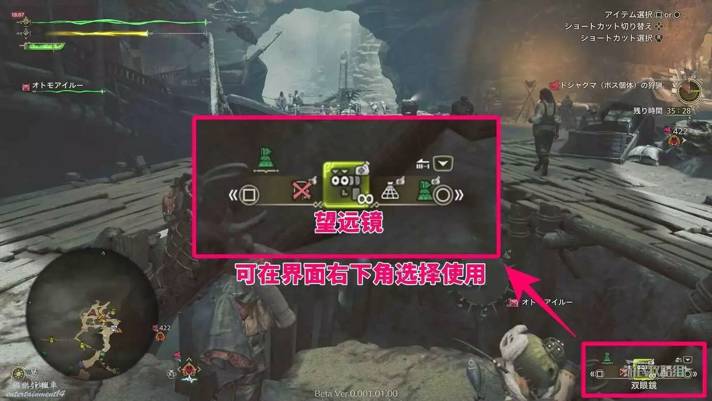 攜帶望遠鏡靠近怪物(約50米距離)並觀察,如果怪物體型達到金冠標準,則名稱下方會顯示金冠圖示,通過此方法可以預先判斷怪物是否帶有金冠。
