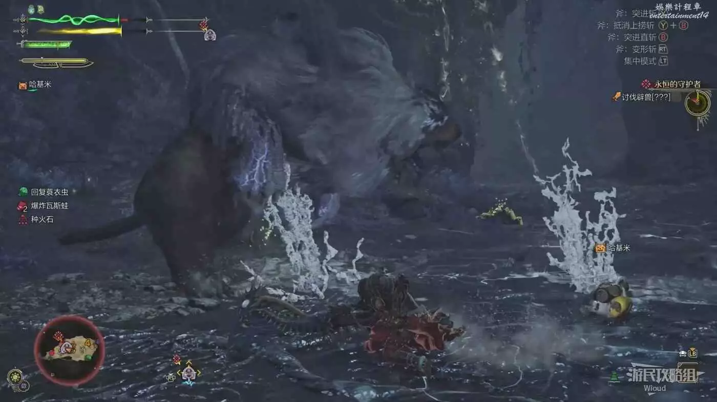 此招式類似於赫猿獸的側躺突刺,護辟獸先是直接將頭側躺在地上,然後立刻朝著目標方向突刺過去。