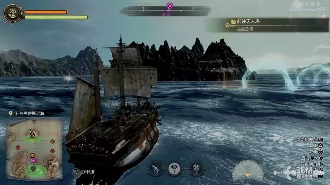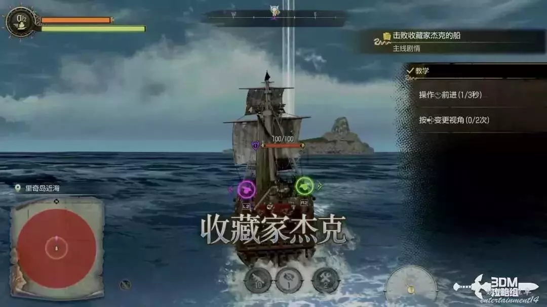 通過搖杆控制船隻航向,左方向鍵控制視角,總共有兩個視角,一個是船隻的第三人稱駕駛視角,一個是船隻的第一人稱駕駛視角。