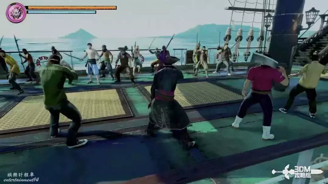 想離開聶勒島上船,就和羅德里格斯對話,第一次想要離開的時候,之前被打的那一堆哈庫會和真島再打一場。