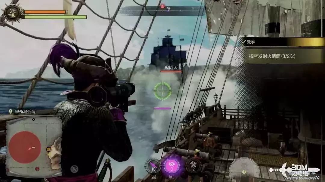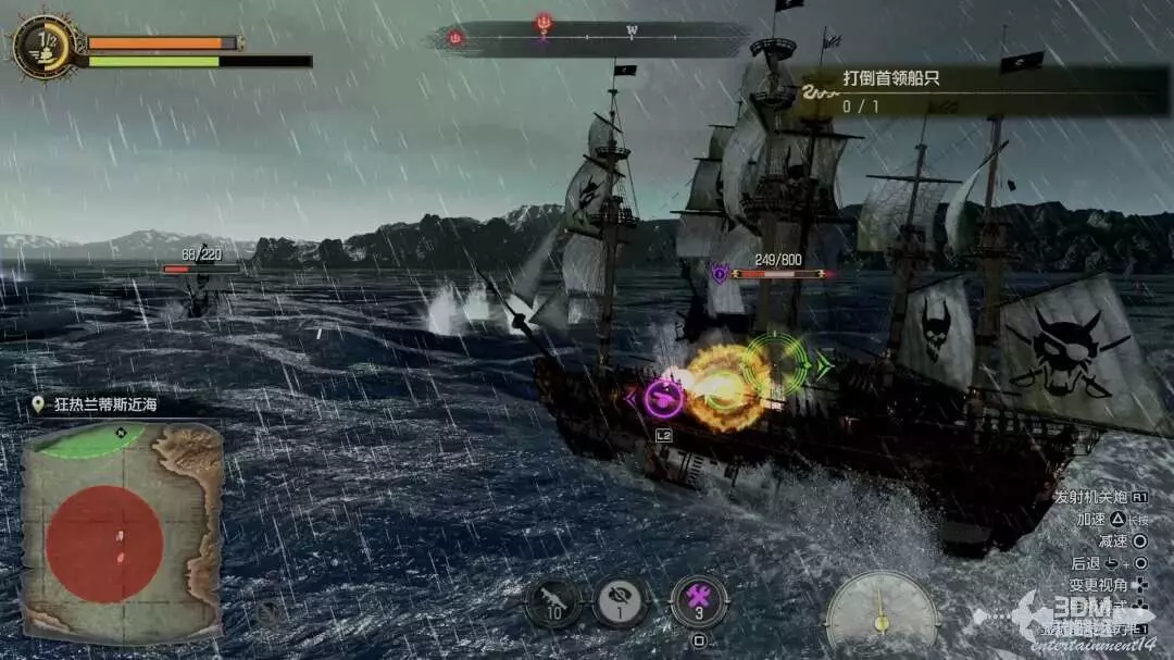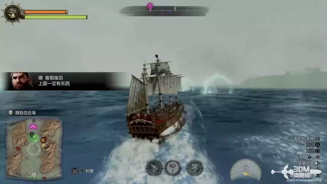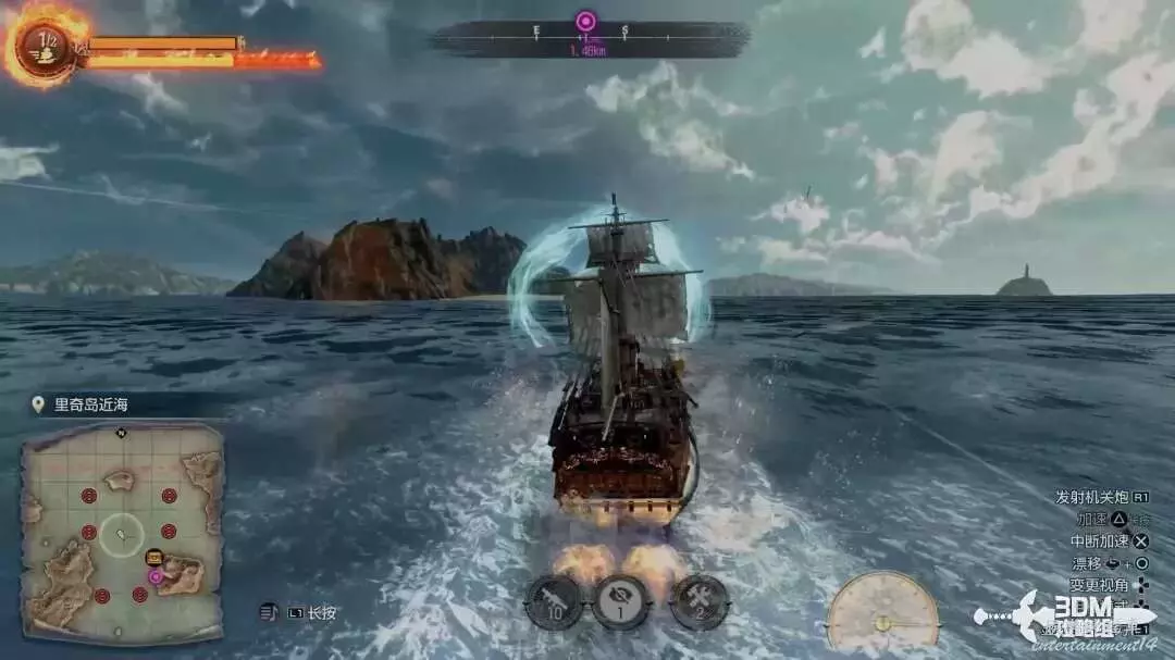 右肩鍵R1是控制機關槍,只能朝著船隻的航向開火。
