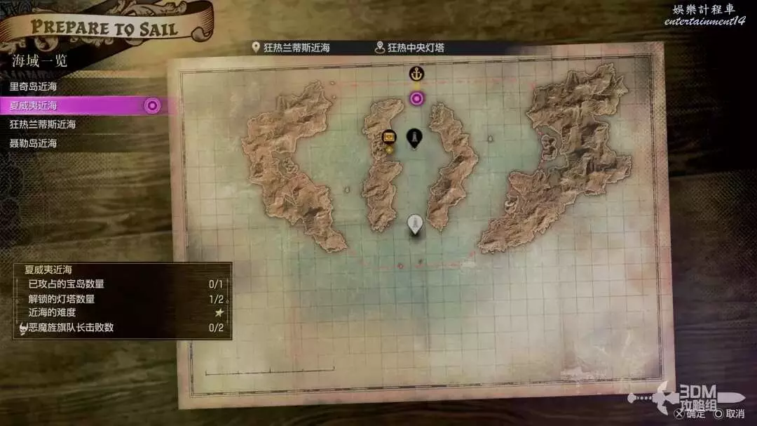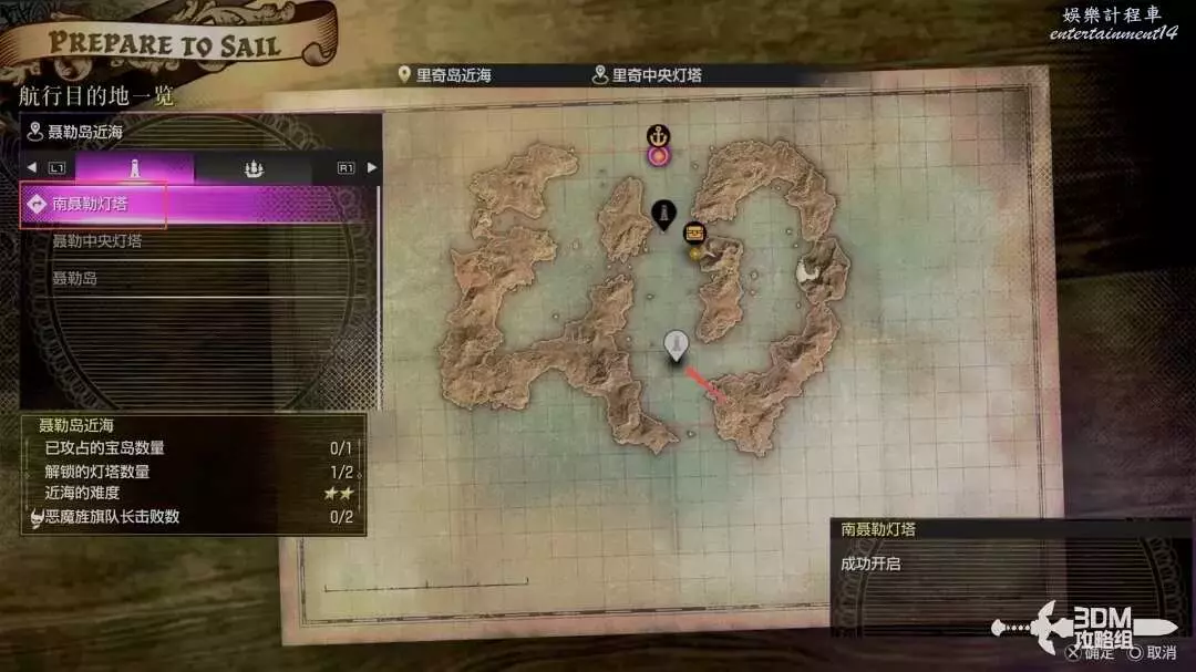 每張地圖都會有幾個燈塔和寶箱,選擇最近的燈塔傳送,然後再登島拿寶箱即可收集藏寶圖鑒,本篇專注於主線,可能不會立即前往寶箱處,大家可自行選擇先後順序。