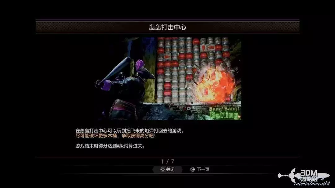 需要將飛過來的炮彈打回去,破壞木桶,並打破大寶箱的鎖之後獲得分數,當分數到達A則為通關。