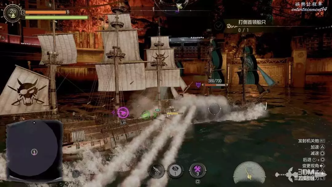 任務要求只要擊敗首領船隻即可,所以直接逮著對面首領船隻輸出!