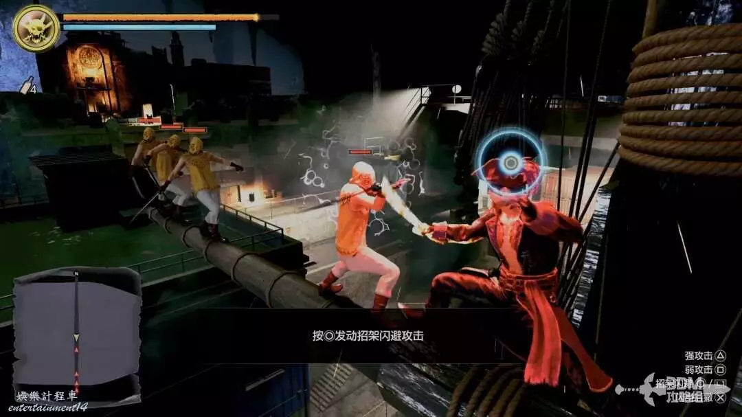 在桅杆上可以使用招架來閃避敵人攻擊,並一招制敵。