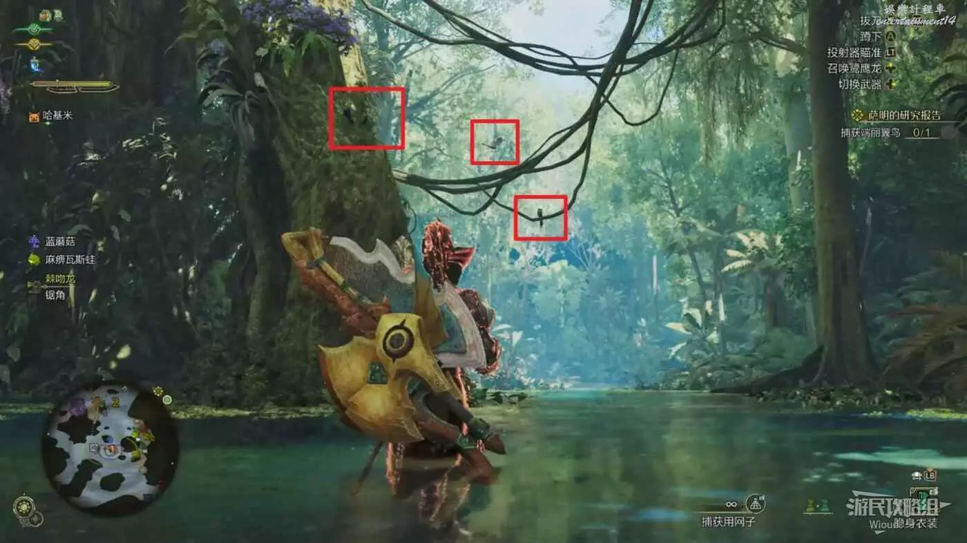 這裡有很多彩虹羽毛的小鳥,直接用捕獲用網子捕捉即可。