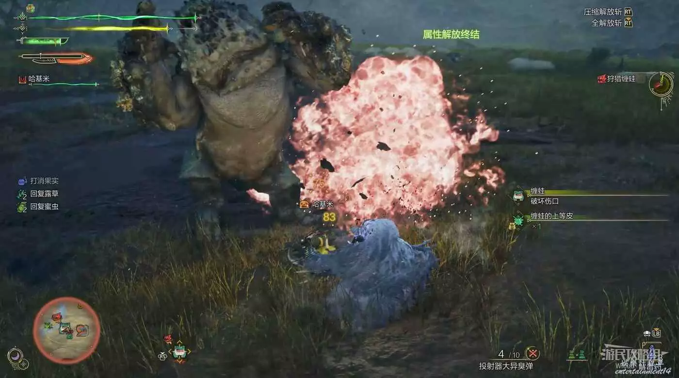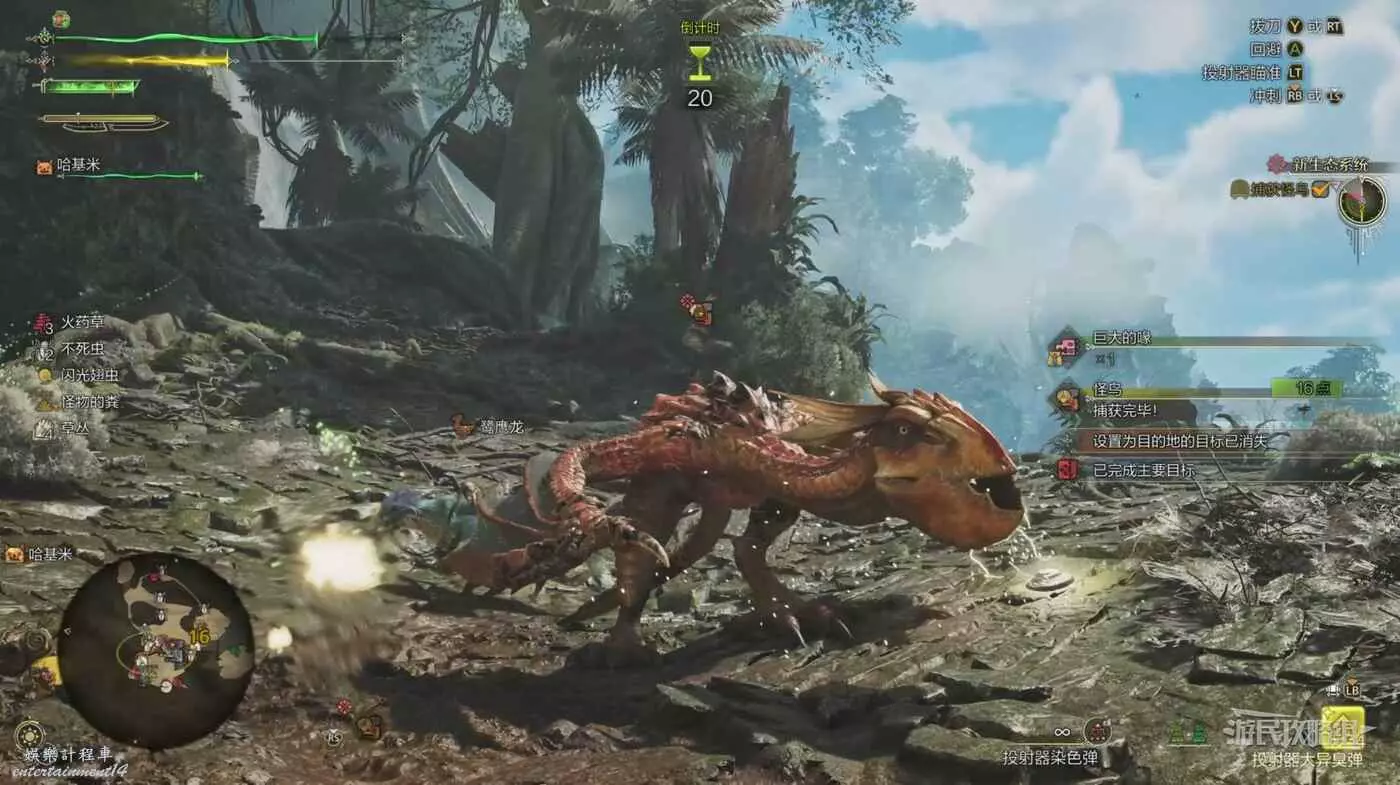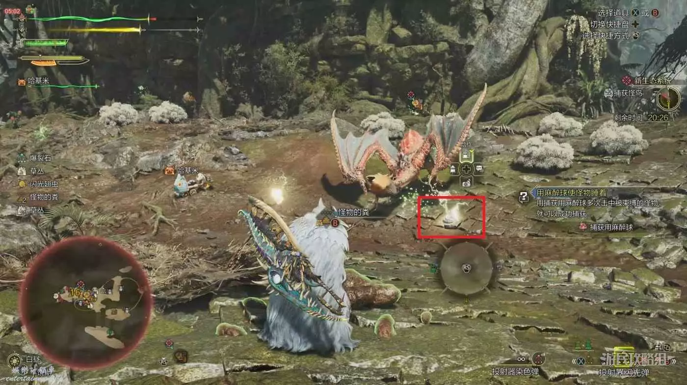 然後瘋狂的對怪鳥扔麻醉球,當怪鳥的麻醉值到達某個節點時自動捕獲成功。