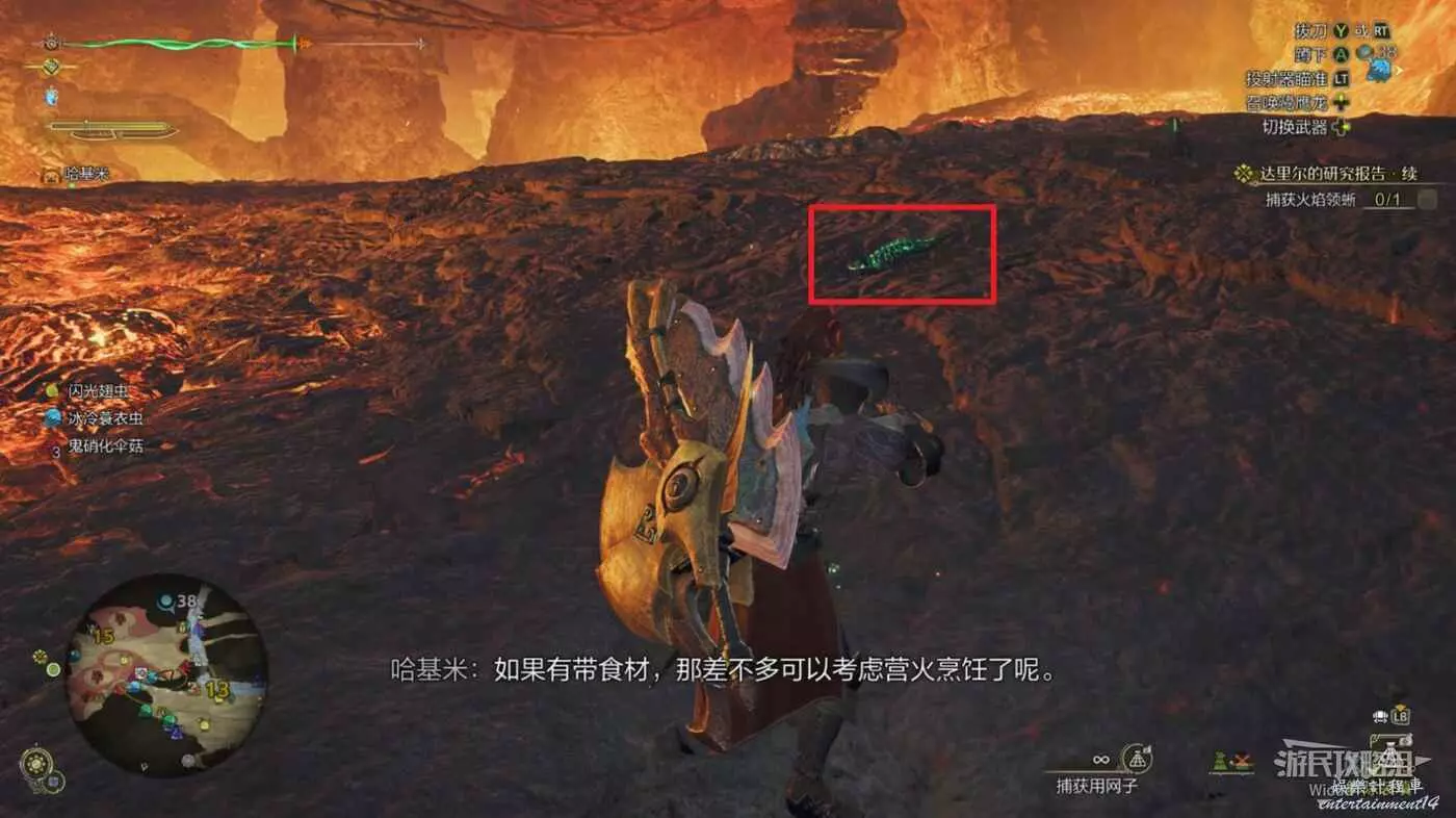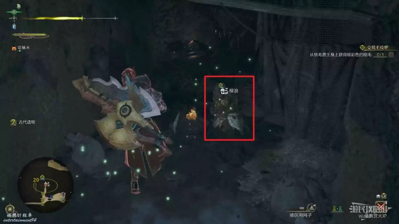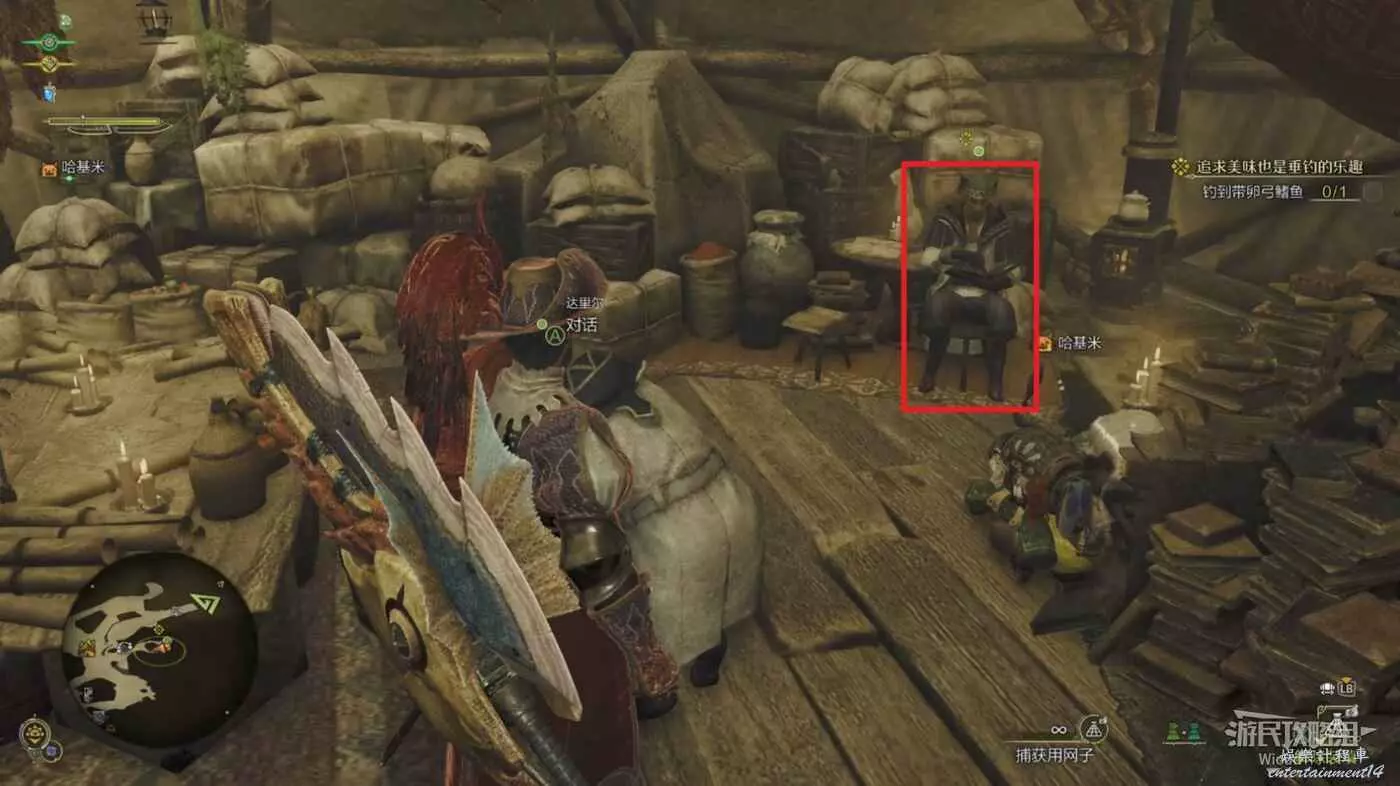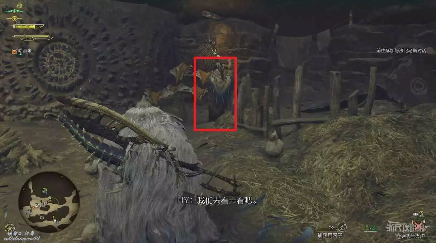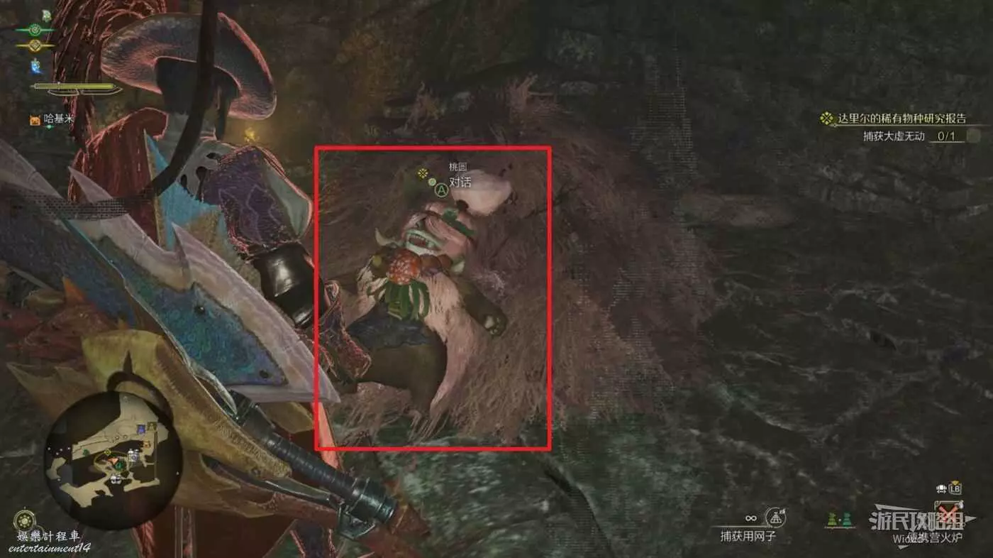 自動尋路過去,然後切換道具捕獲用網子直接瞄準捕捉,回到營地與貓對話完成任務。