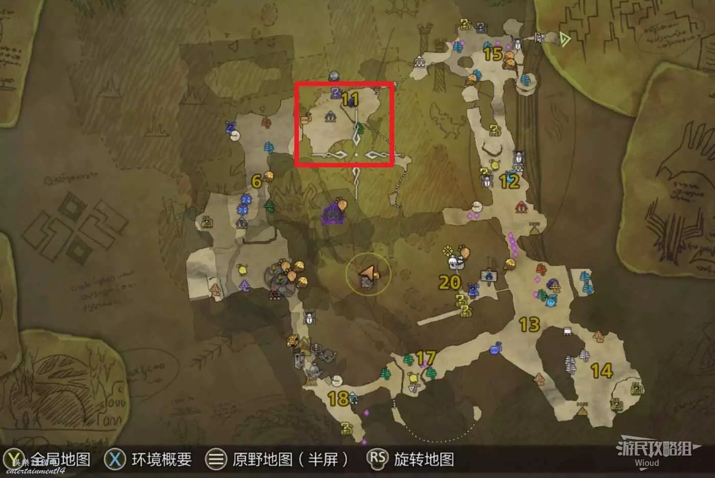 在豐饒期傳送到緋紅森林,移動到下圖所示位置。