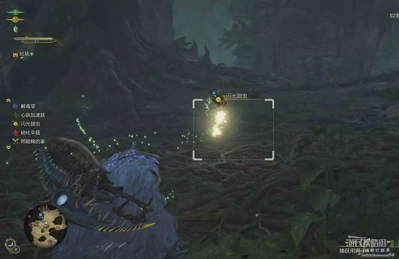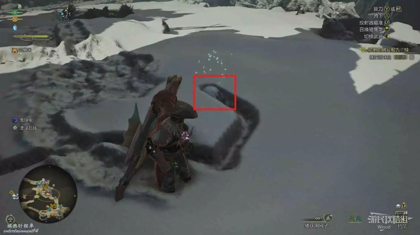 發綠光且推著一個雪球不斷移動的蟲子就是我們的目標,如果之前見過也可以直接在地圖左下角的圖示篩選處鎖定目標。