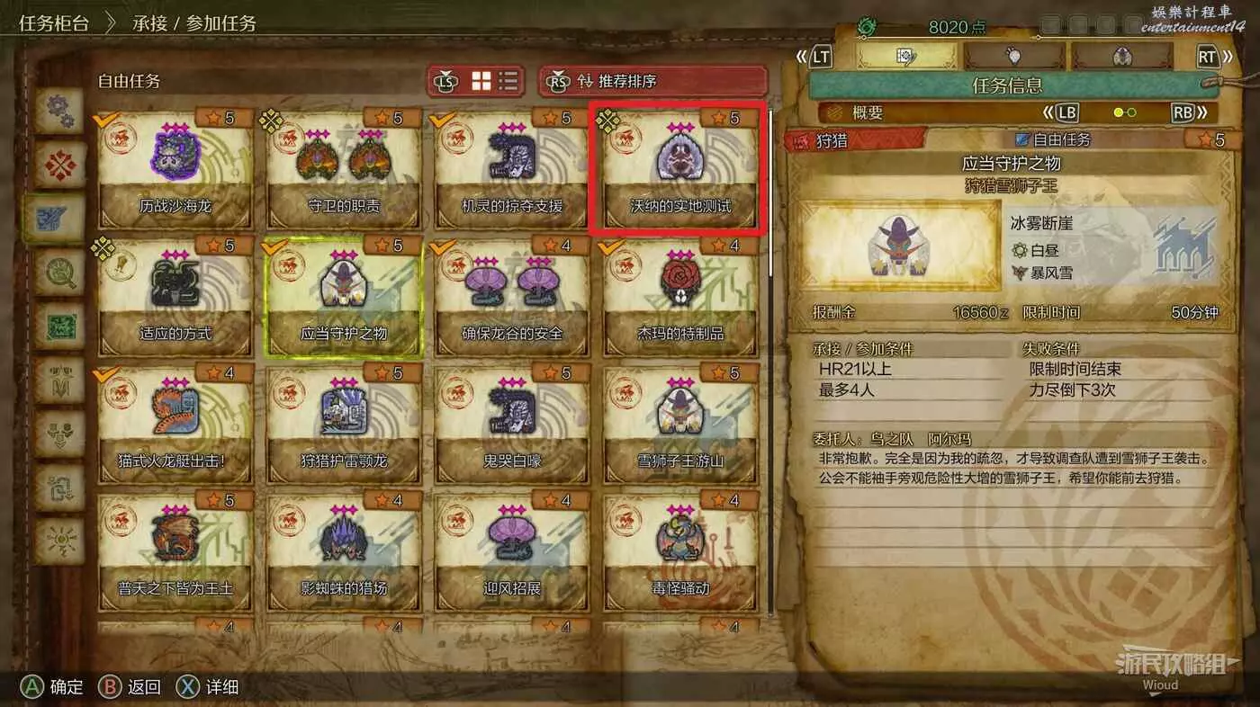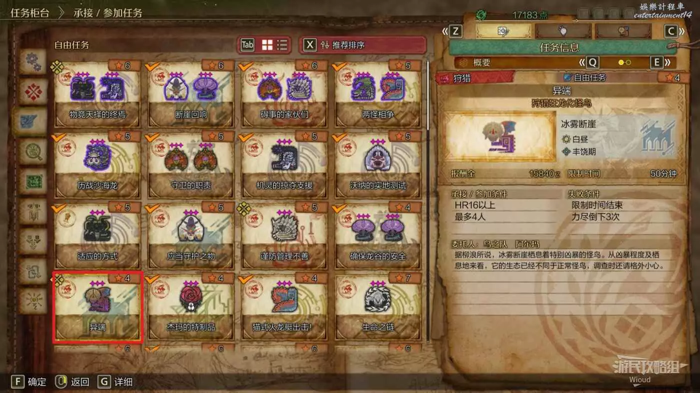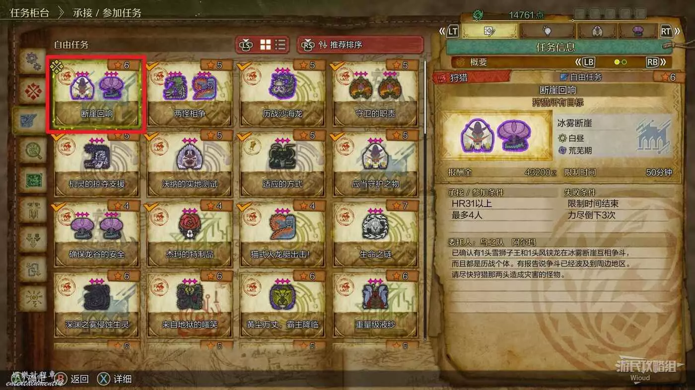 與阿爾瑪對話,在自由任務介面選擇【斷崖迴響】任務,這個任務需要我們再次擊敗【雪獅子王】與【風鋏龍】
