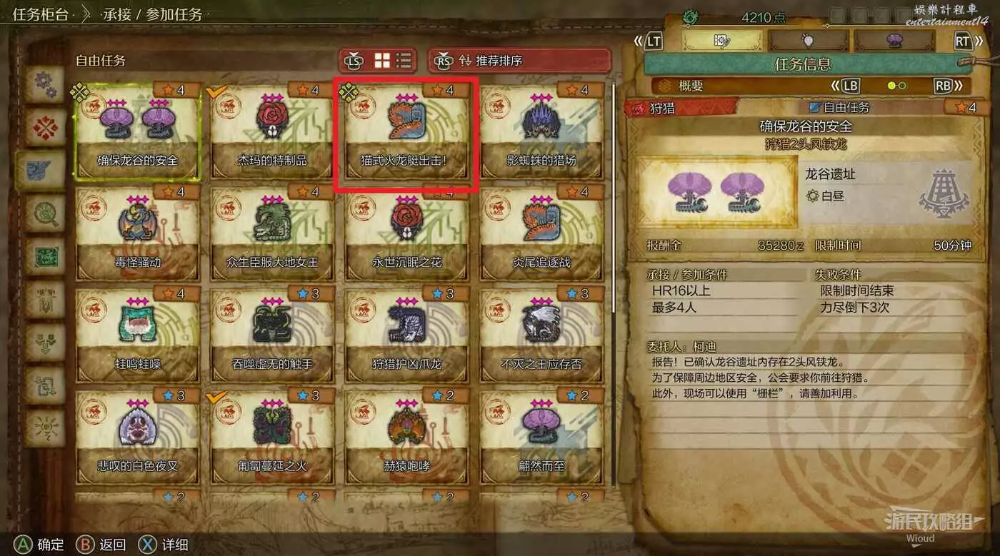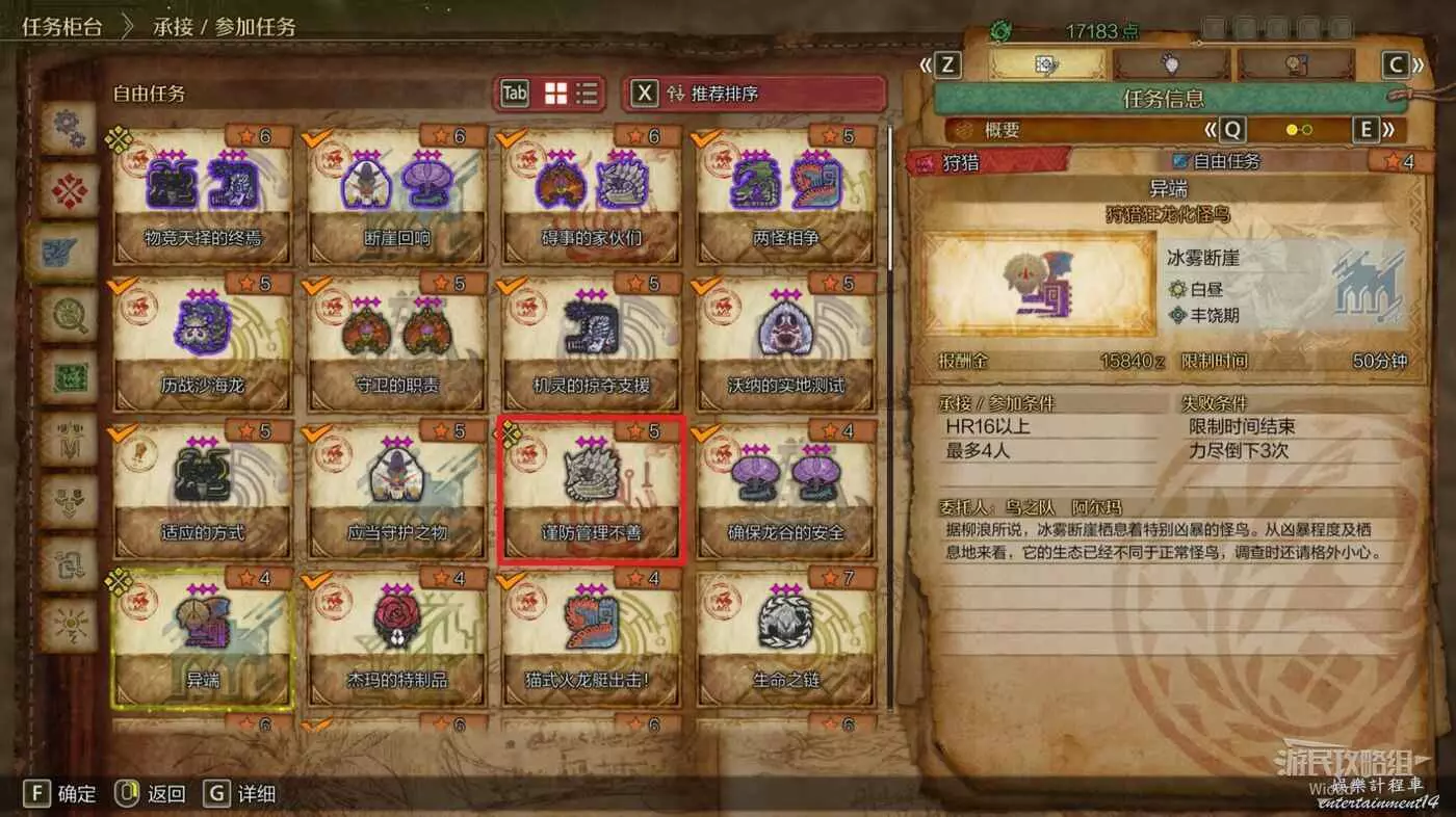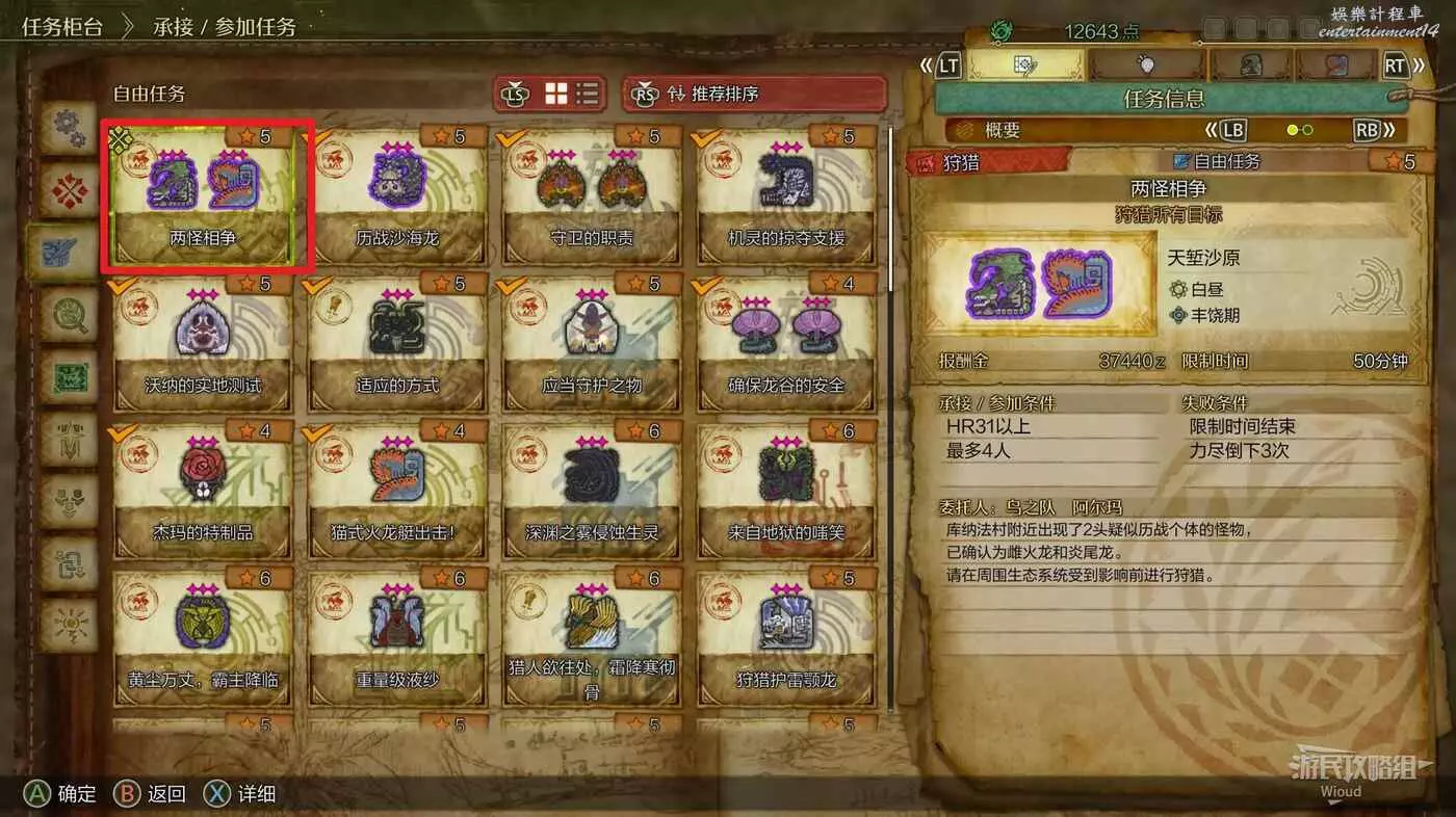純粹的戰鬥任務,找阿爾瑪進入自由任務,選擇兩怪相爭並依次狩獵雌火龍與炎尾龍即可。