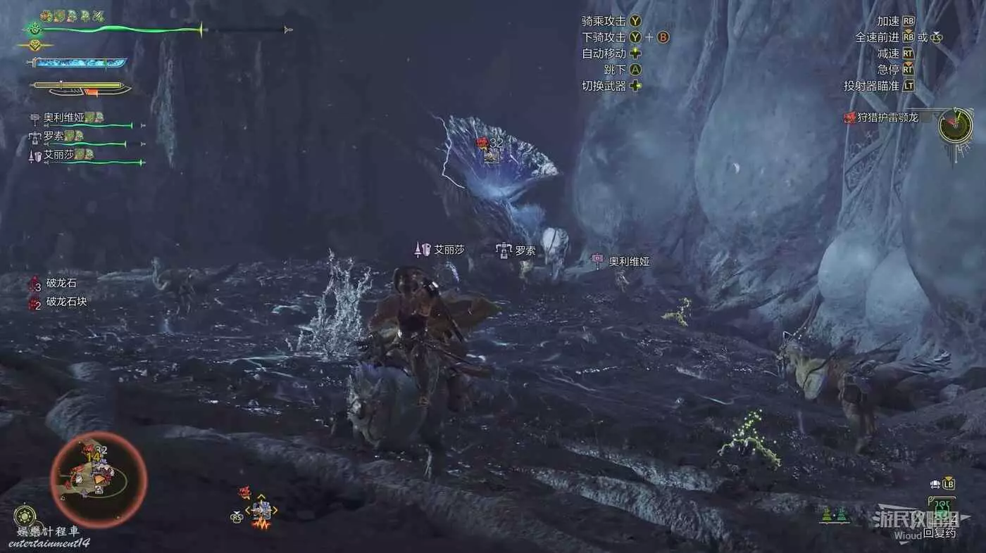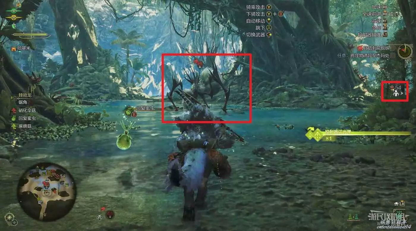 首先騎龍自動尋路到刺花蜘蛛的位置,進入戰鬥前注意另一個指引也就是傑瑪的位置。