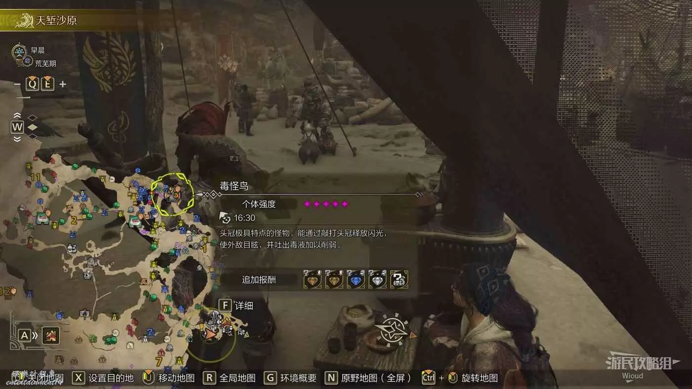 等待沙漠地區刷出毒怪鳥,然後直接地圖點擊詳情選擇實地考察並將毒怪鳥擊敗,回去找紮托對話完成這個任務。