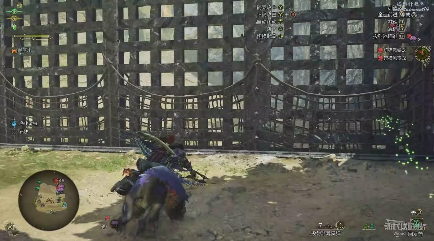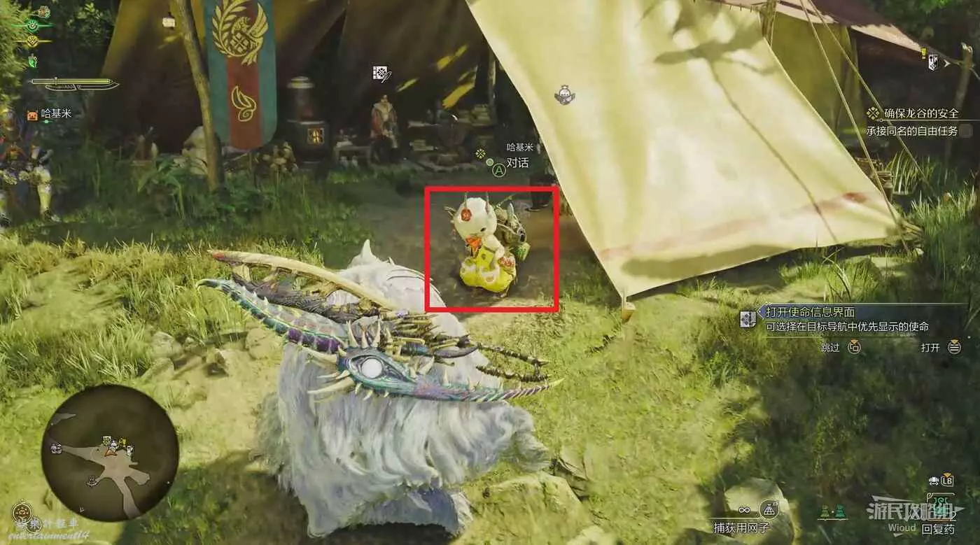 任務開始時系統會給分配專門的捕捉道具,騎乘鷺鷹龍時打開鷺鷹龍道具袋即可看到,當然如果自己的裝備欄已滿,我們無法將道具袋裡的東西放到身上的,出發前需要檢查一下,在個人帳篷的道具箱內更換。