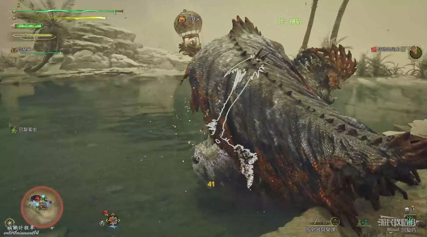 經典尾擊動作,怪物站立不動,屁股尾巴抬高配合低頭+回看,一定要養成對這個動作有肌肉反應的意識。