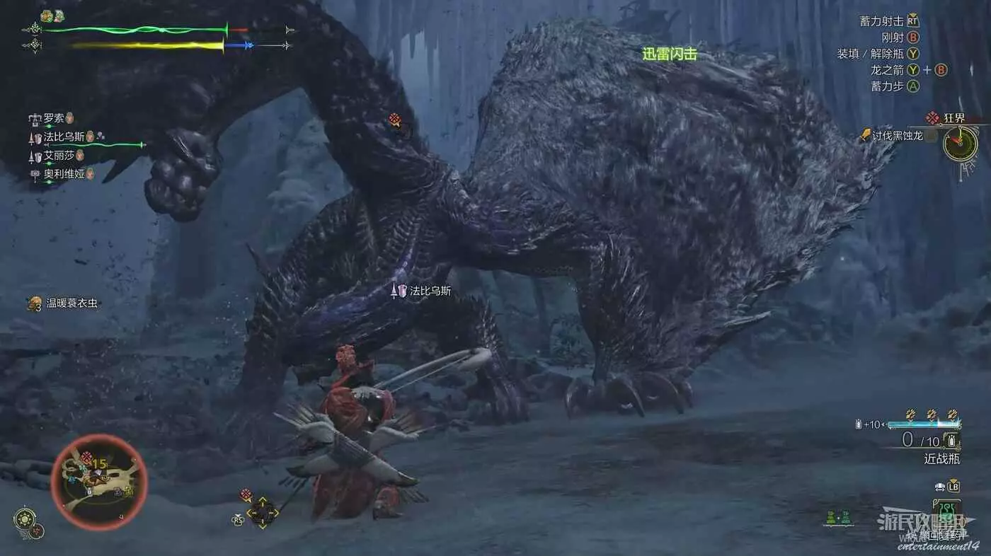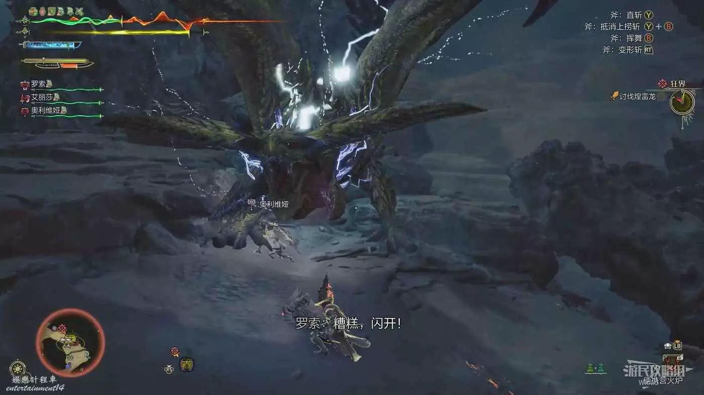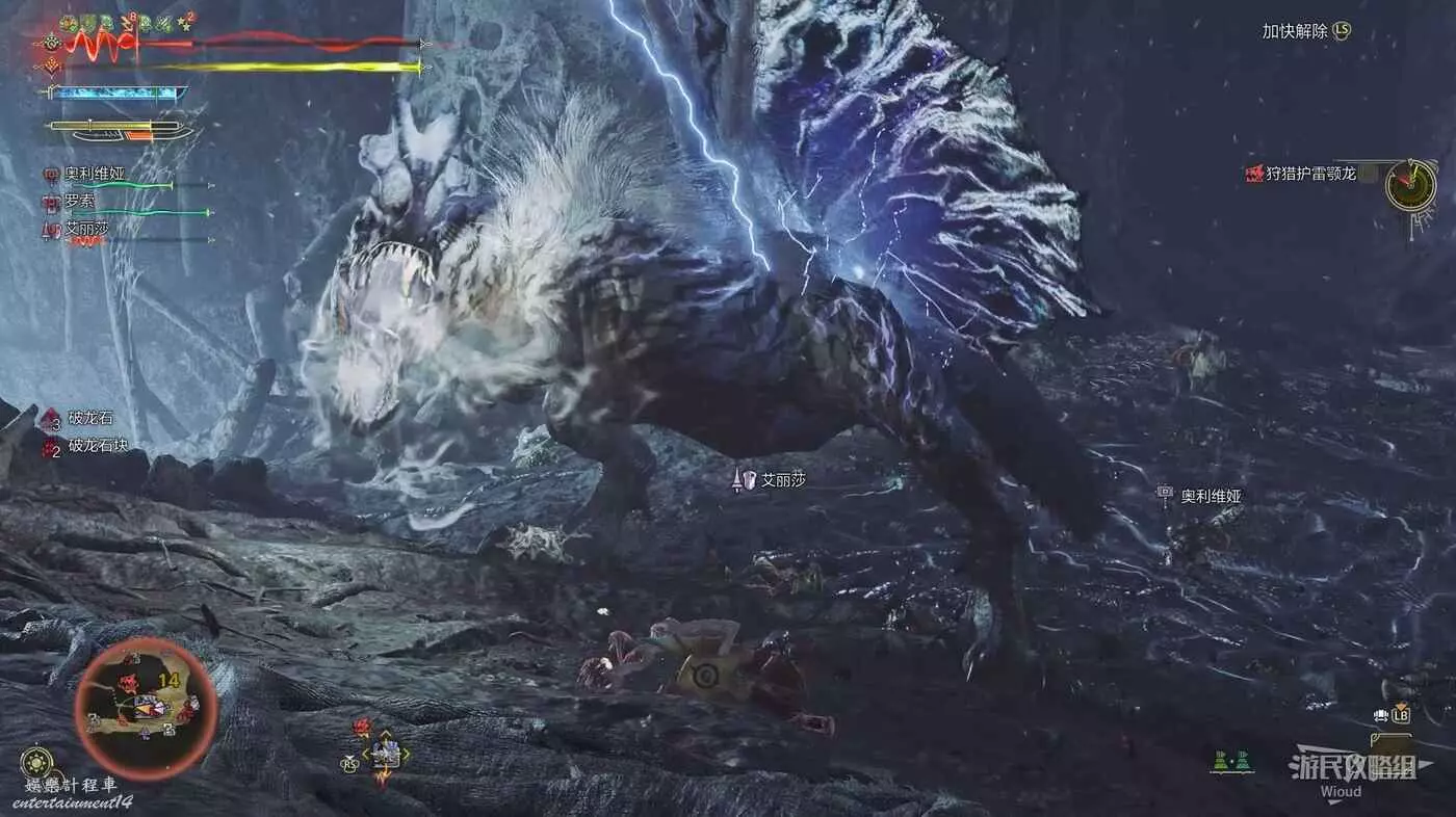 護雷顎龍突然起身朝天怒吼,短暫蓄力後朝著玩家直接衝刺而來,在終點處還能造成一個範圍傷害判定。