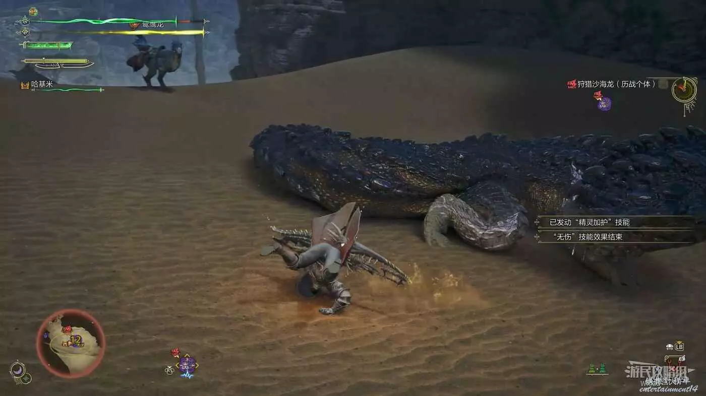 然後與阿爾瑪對話進入自由任務頁面,選擇【曆戰沙海龍】直接進入,將目標沙海龍擊敗後回去找伊賽對話完成這個任務。