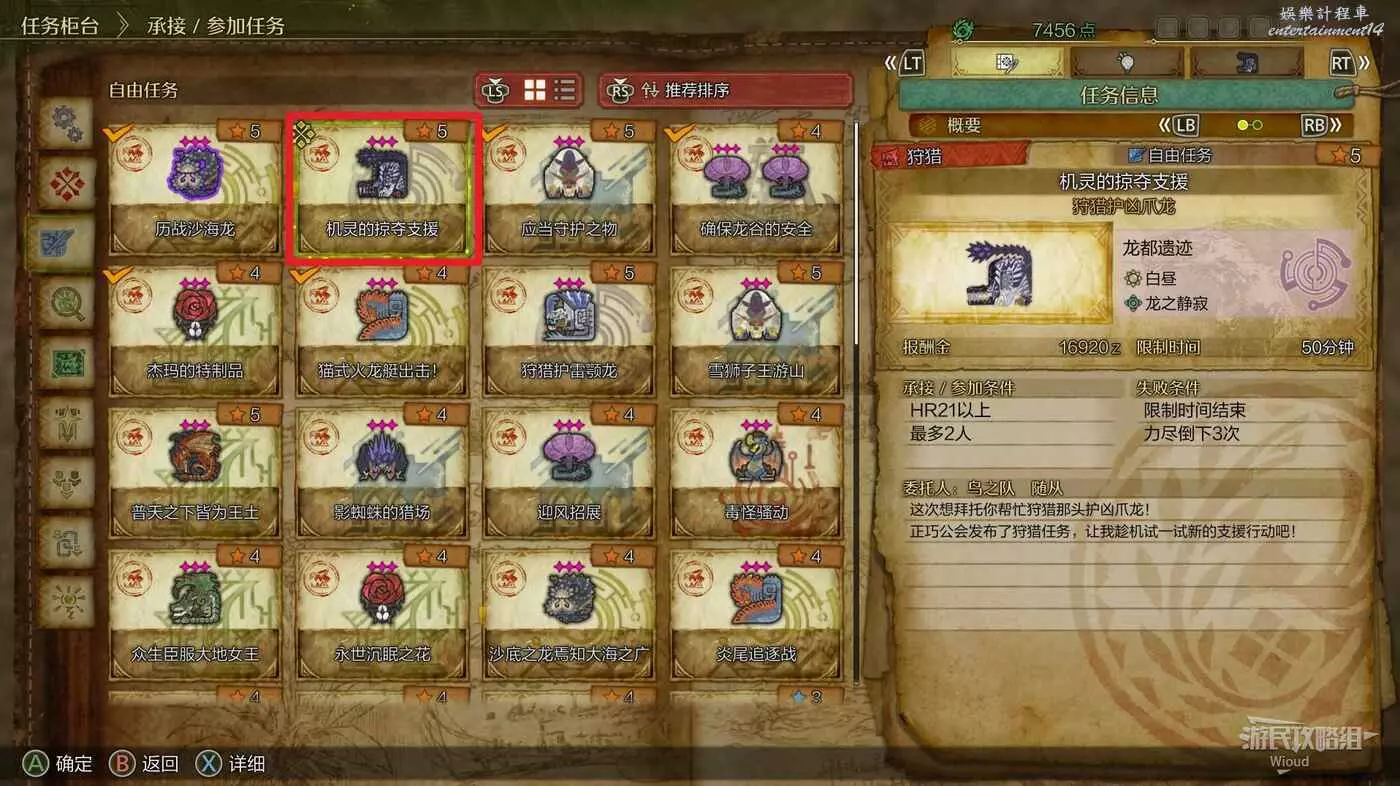 直接找阿爾瑪對話,在自由任務介面加入【機靈的掠奪支援】並擊敗裡面的護凶爪龍即可。