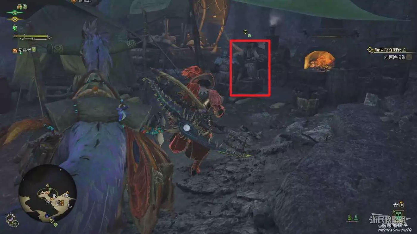 完成主線【龍穀潛影】後,與法比烏斯身後的獵人對話即可接取支線【確保龍谷的安全】。