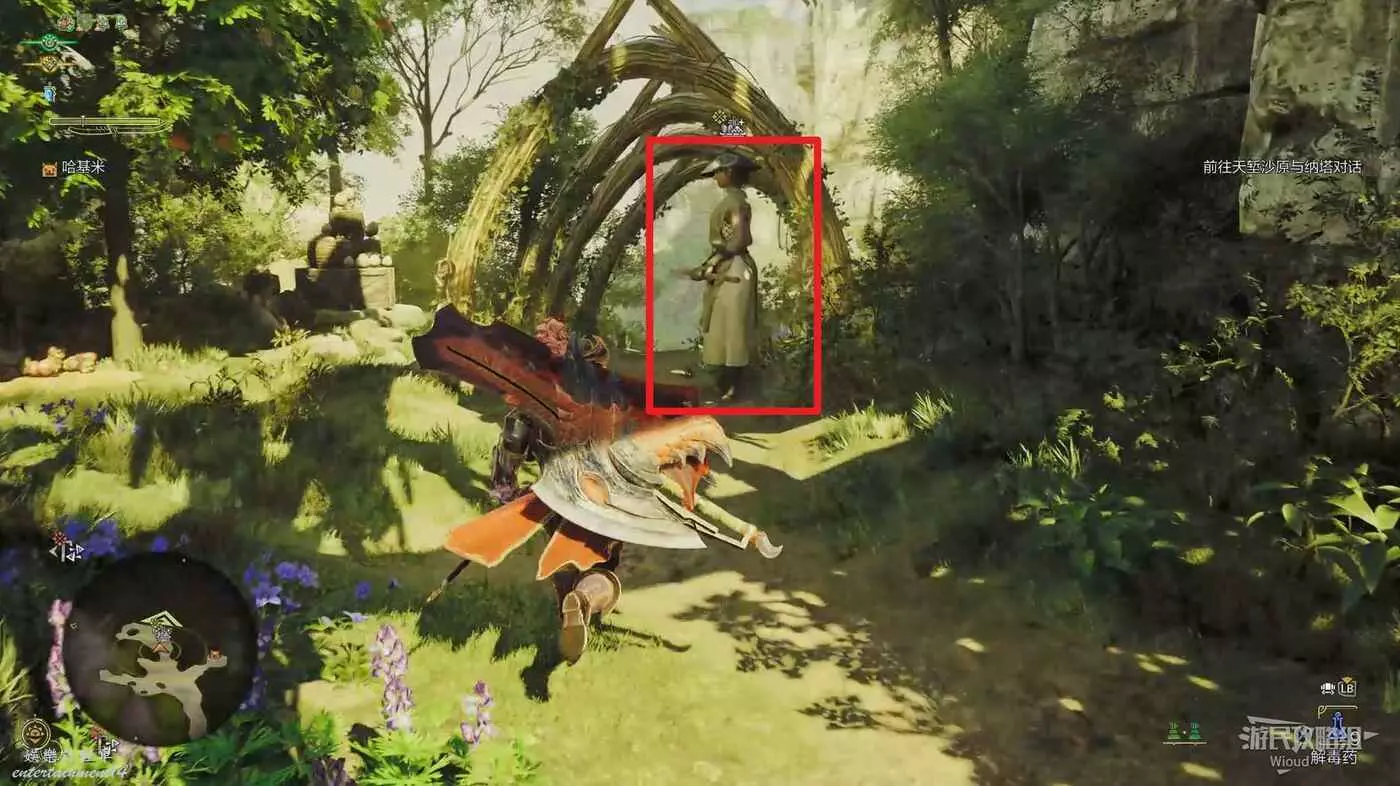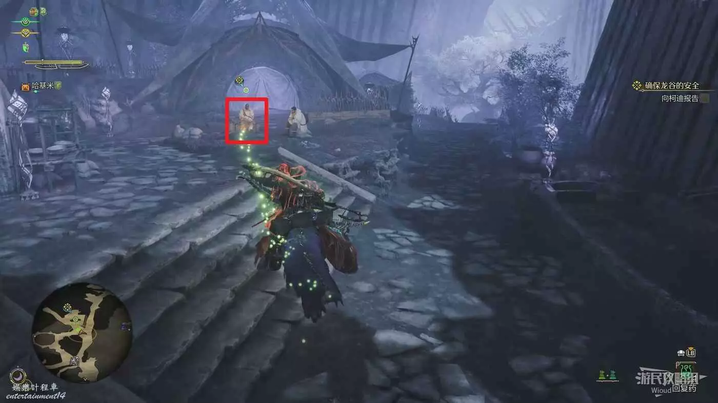 這個NPC會一直四處遊蕩,需要查看地圖的黃綠指引標識找到他。