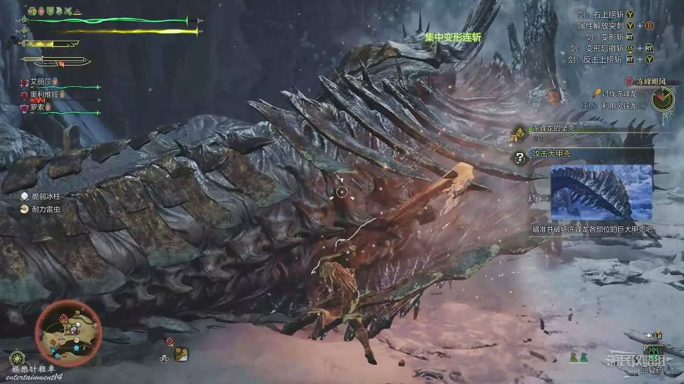 在營地依次與柳浪和阿爾瑪對話選擇出發,傳送到目標地圖再次討伐凍峰龍。