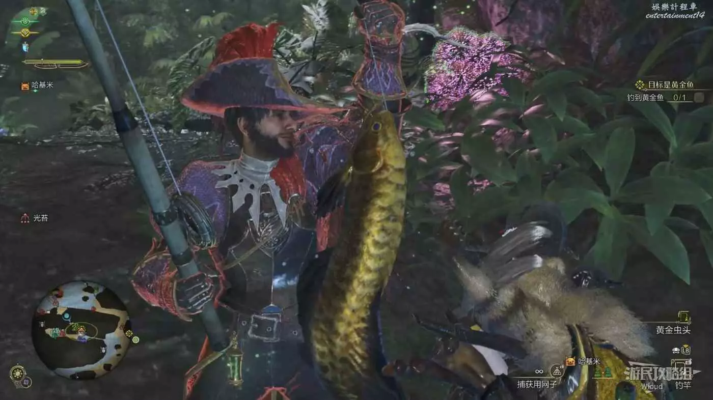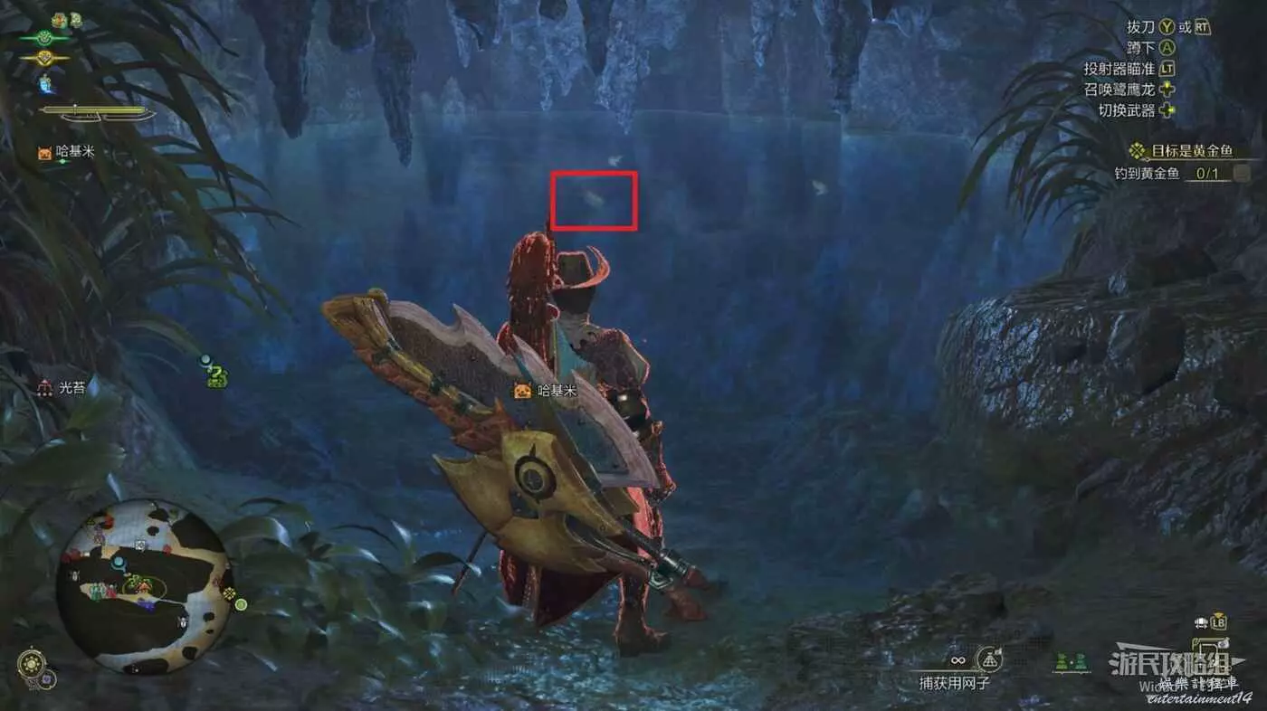 拿出釣竿並切換黃金魚餌,投擲到魚旁邊即可輕鬆釣到。