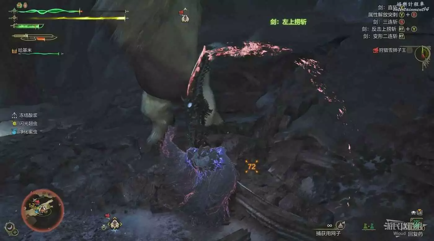 雪獅子王的臀部是弱點,其頭部和尾巴都可以被破壞,以上所有部位都有較高素材掉落率。