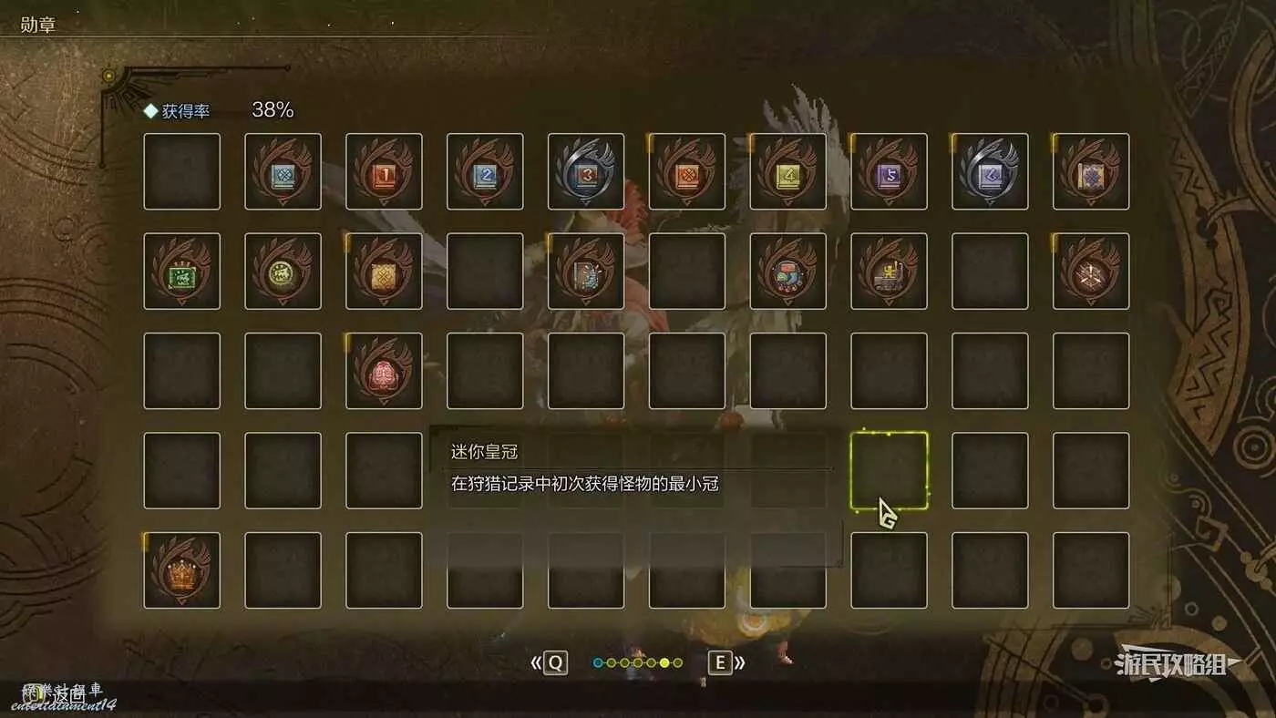有些勳章可能無法在完成任務或狩獵怪物的過程中自然獲得,查看勳章獲取條件,努力獲得所有勳章吧。部分勳章與成就/獎盃相關聯,可以一併完成。將游標移動到沒有解鎖的勳章上可以查看勳章的解鎖條件。