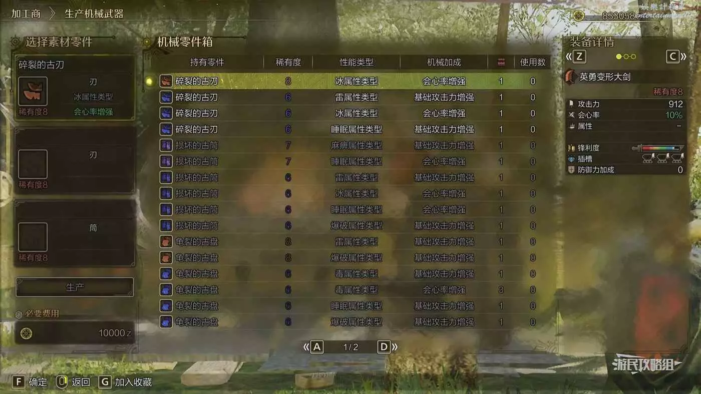 機械武器指組合三個相同稀有度的機械零件來生產的武器,所需的零件會因武器種類而異。生產時需注意零件的性能類型和機械加成。機械武器的屬性將根據所選零件中占比最高的性能類型來決定。在通關後可以繼續狩獵強力的怪物,收集零件,打造屬於自己的獨特而強大的武器吧。