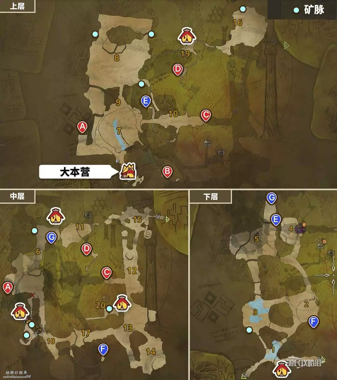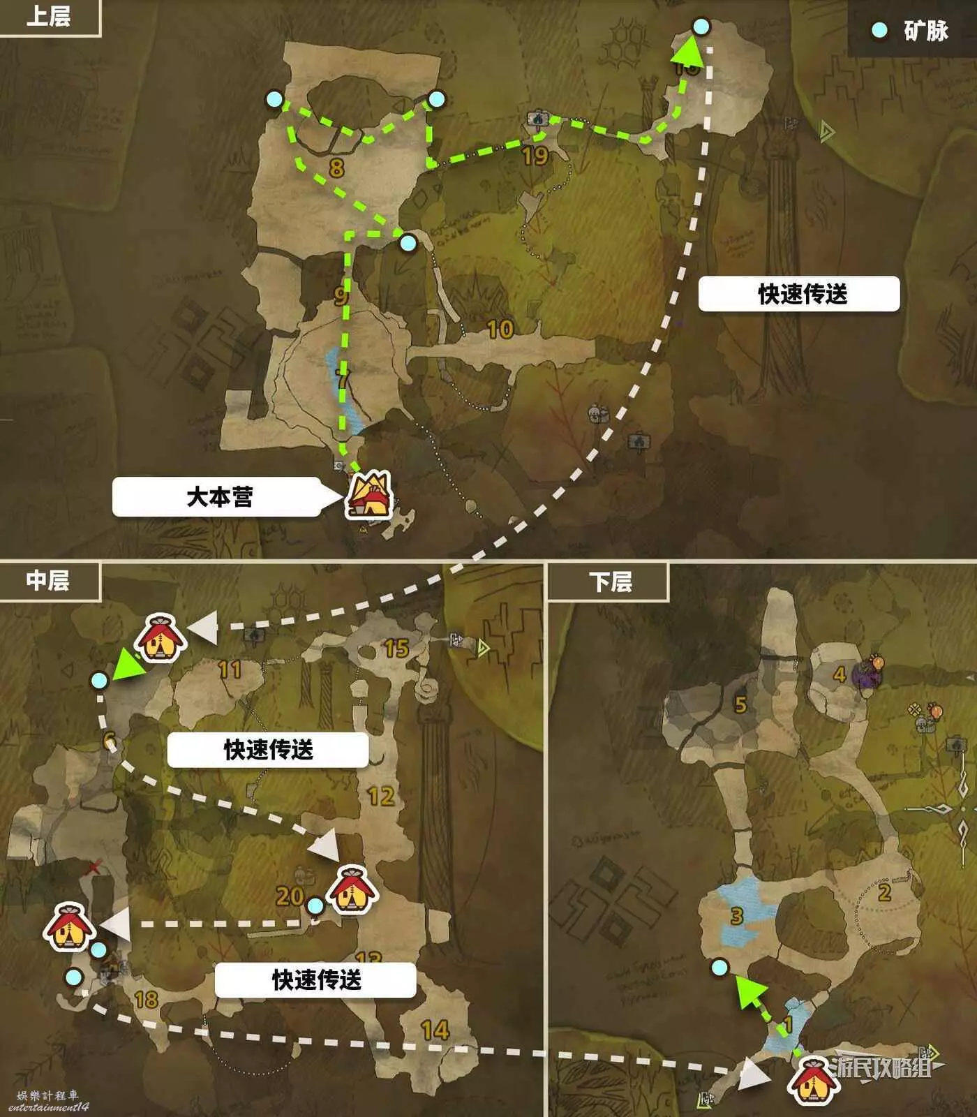 魔物獵人 荒野 冰霧斷崖礦脈點位及採集路線推薦 6 3 月 2025-03-06 廣告 作者:瑞破受氣包 來源:遊民星空 冰霧斷崖 冰霧斷崖的礦脈在上、中和下層都有分佈,上層有4個點位、中層有4個點位,下層有1個點位。 下位礦脈:燕雀石、輝龍石、結冰金屬 上位礦脈:靈鶴石、光水晶、結冰金屬、雪光金屬 冰霧斷崖的礦脈採集路線推薦從有礦脈的上層出發,先採集簡易營地附近的礦石。採集完區域16的礦脈後,快速傳送到中層和下層的簡易營地,採集附近的礦脈。
