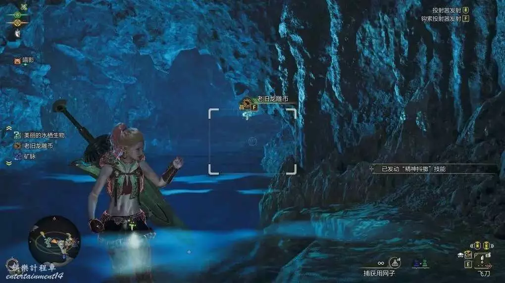 傳送到緋紅森林12區營地,西北方瀑布後下潛,古舊龍雕幣X1,酒杯藻X3